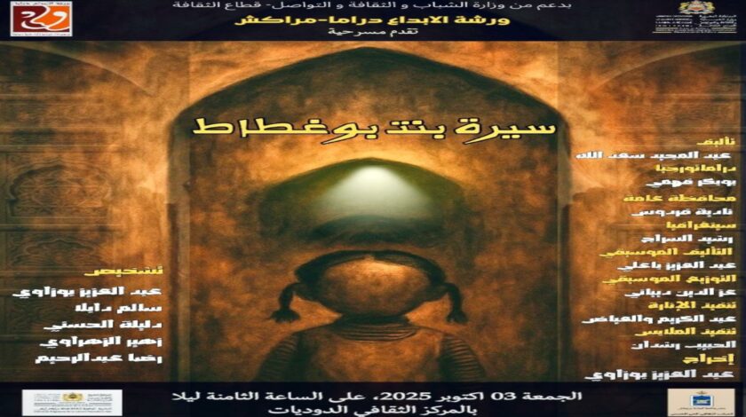 - 19:29ورشة الابداع دراما تعرض مسرحيتها الجديدة “سيرة بنت بوغطاط “بمراكش