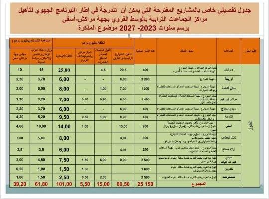 وفي ما يلي تفاصيل هذا المشروع بالنسبة لكل جماعة من الجماعات المستفيدة: