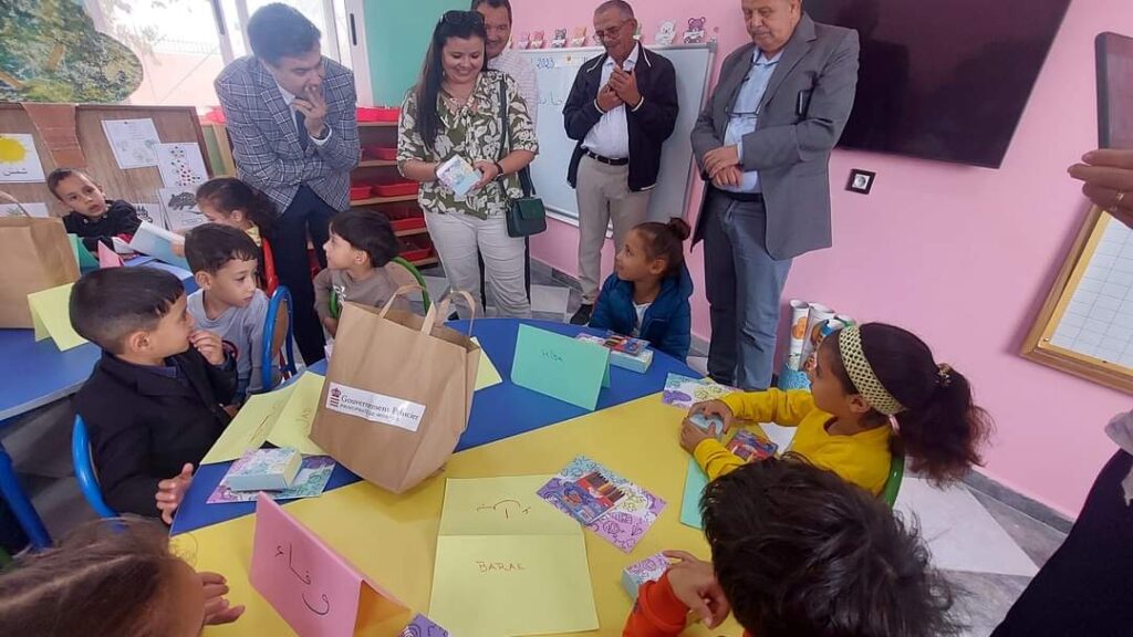 وشمل الحفل إضافة للتعريف بمضامين الشراكة، زيارة ميدانية بحضور قائد قيادة رأس العين، لكل من وحدتي مركزية م.م رأس العين والمدرسة الجماعاتية دار هدي بن الضو، حيث تم الوقوف على عملية تسليم الألعاب التربوية، التجهيزات، ووسائل العمل الخاصة بأطفال التعليم الأولي والمربيات، والتي ستساهم في تجويد العرض التربوي بهذه الوحدات لما فيه خير للناشئة.