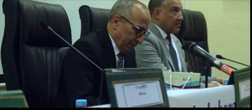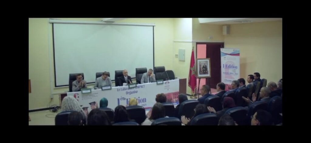 د. أيوب بوحوحو مدير مختبر LIMPACT وفي مداخلته خلال الجلسة الافتتاحية، اعرب عن سعادته لحضور رئيس جامعة القاضي عياض وتشريفه بافتتاح هذا الملتقى كما اغتنم الفرصة للترحيب به وتهنئته بالثقة المولوية، كما شكر عميد الكلية على دعمه المتواصل للمختبر ولجل اللقاءات العلمية التي تنظم بذات الكلية متمنيا له مسيرة موفقة بعد تنصيبه مؤخرا عميدا للكلية.