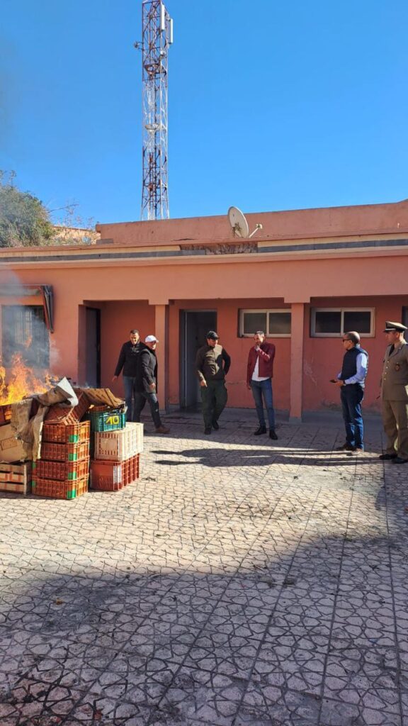 وحسب المعطيات المتوفرة، فإن هذا التدخل أسفر عن حجز 64 من صناديق الخضر والفواكه ( الفارغة) مركونة بالشارع العام، وقد تم إتلاف المحجوز على الفور باشراف السلطة المحلية.