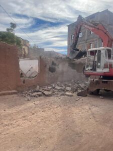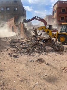 وبالموازاة مع ذلك، انطلقت عمليات هدم المساكن الصفيحية بالدواوير والتجمعات المستهدفة حيث تم هدم خلال الأيام الأخيرة 37 سكن صفيحي بدوار مولاي عزوز (2)، 64 سكن صفيحي بدوار حاحا الضاوي بنسبة % 100 وكذا 37 سكن في الحواجز والجيوب. للإشارة، تتم مواكبة هذه العمليات من طرف شركة العمران بإشراف من المنظومة المحلية.
