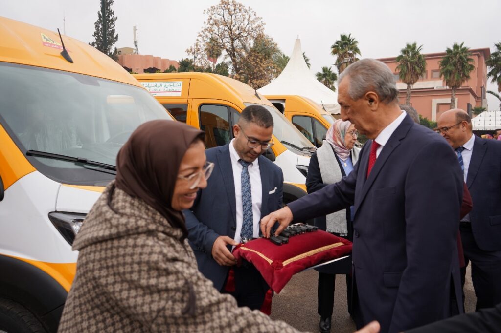 وتهم عملية التسليم 12 سيارة للنقل المدرسي تم اقتناؤها في إطار برنامج الدفع بالرأسمال البشري للأجيال الصاعدة بهدف دعم التمدرس والمساهمة في محاربة الهدر والإخفاق المدرسي، وذلك لفائدة 10 جماعات ترابية حيث سيستفيد من هذه السيارات 624 تلميذة وتلميذ، و03 سيارات للنقل لفائدة ثلاثة جمعيات تشتغل في مجال الإعاقة لدعم خدمات النقل المدرسي التي تقدمها لفائدة 135 طفل وطفلة من ذوي الإعاقة الحركية.