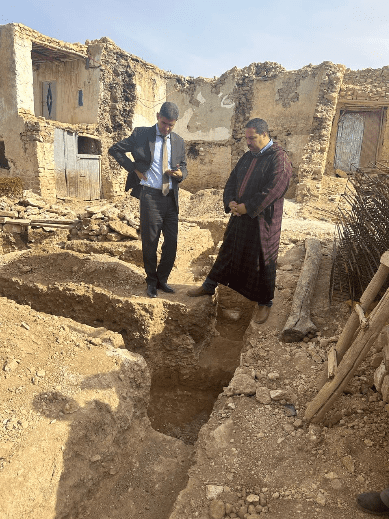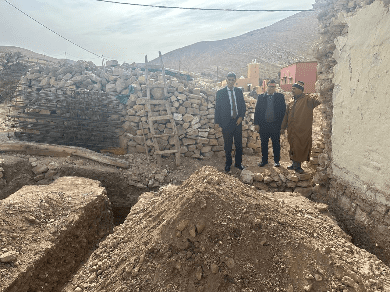 وقد وقف عامل الإقليم خلال زيارته التفقدية على شروع الأسر المستفيدة من الدعم في عملية حفر الأساسات، وذلك بعد إزالة المقاولة المختصة للأنقاظ، واوصى الفرق التقنية المحلية بضرورة تشديد المراقبة والتحقق من مدى مطابقة أشغال البناء مع المعايير المعمول بها في إطار هذا البرنامج الوطني.