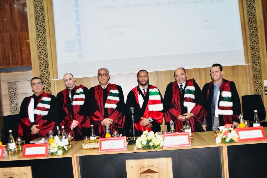 شهد مدرج المختار السوسي بكلية الحقوق بجامعة القاضي عيّاض مراكش يوم الجمعة 7 فبراير 2025 مناقشة أطروحة لنيل الدكتوراه في الحقوق، تقدم بها الباحث عبد الرحمان كامل حول موضوع: “الاستراتيجية الاتصالية الحكومية في فترات الأزمات: دراسة لحالة وزارة الداخلية خلال أزمة كوفيد 19 من منظور مؤسسات الإعلام الإلكتروني (2020-2024)”.