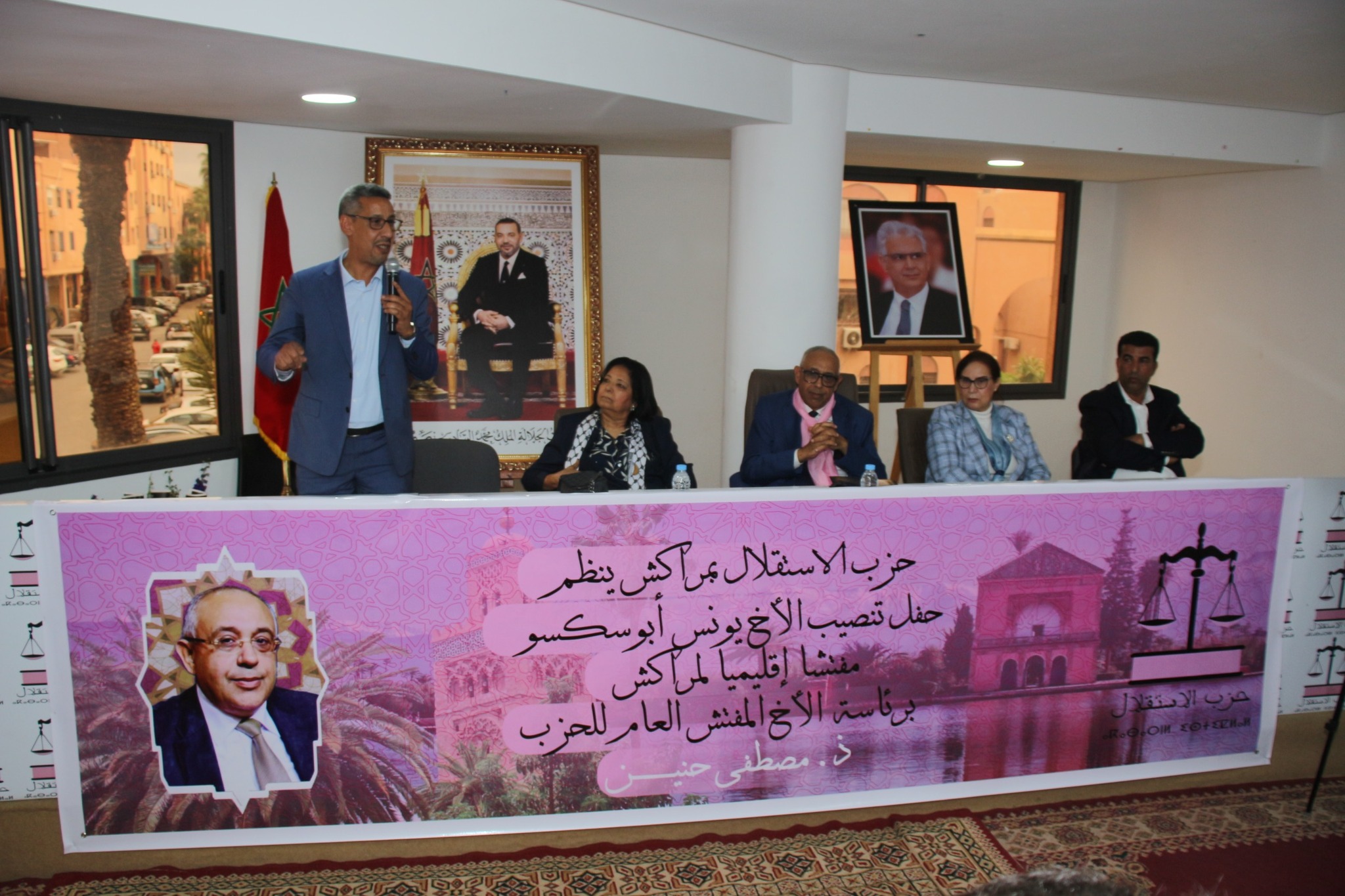 جرى، مساء اليوم السبت 19 أبريل الجاري، بمدينة مراكش، التنصيب الرسمي ليونس بوسكسو مفتشاً إقليمياً لحزب الاستقلال بمراكش، ويعكس هذا التنصيب الهيكلة الجديدة للحزب على المستوى الإقليمي في المدينة.