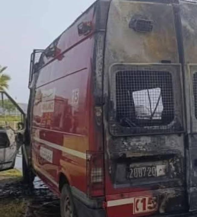 احتراق سيارة إسعاف بكورنيش الناظور دون تسجيل إصابات