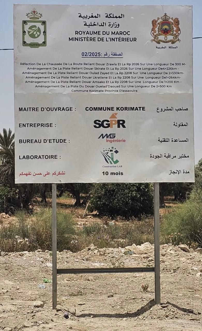 وهكذا فقد تمت تهيئة الطريق الرابطة بين دوار السكيرات والطريق الإقليمية 2026 على مسافة 4.226 كلم، وبناء الطريق الرابطة بين دوار الزراولة والطريق الاقليمية 2026، إضافة الى تهيئة الطريق الرابطة بين دوار أولاد زايد والطريق الاقليمية 2008 على مسألة 2.530 كلم.