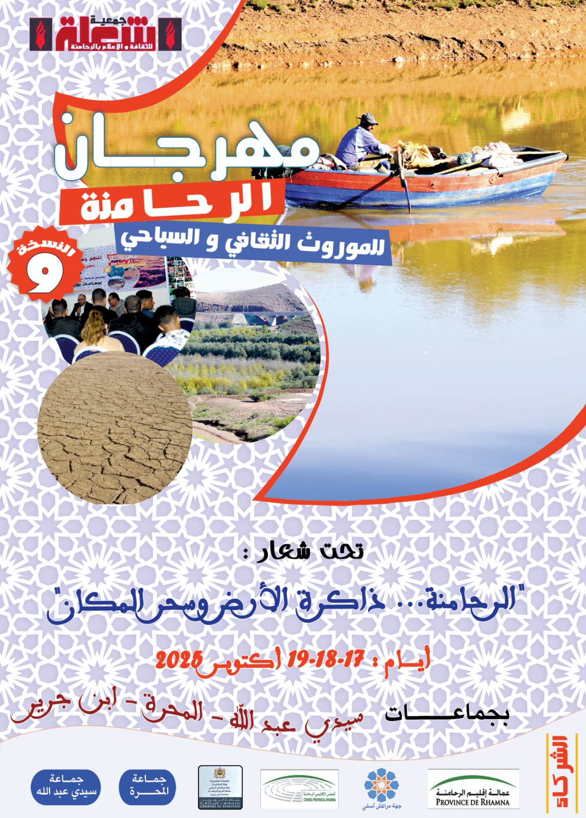 تستعد جمعية شعلة للثقافة والإعلام بالرحامنة لتنظيم الدورة التاسعة من مهرجان الرحامنة للموروث الثقافي والسياحي، وذلك خلال أيام 17 و18 و19 أكتوبر 2025.