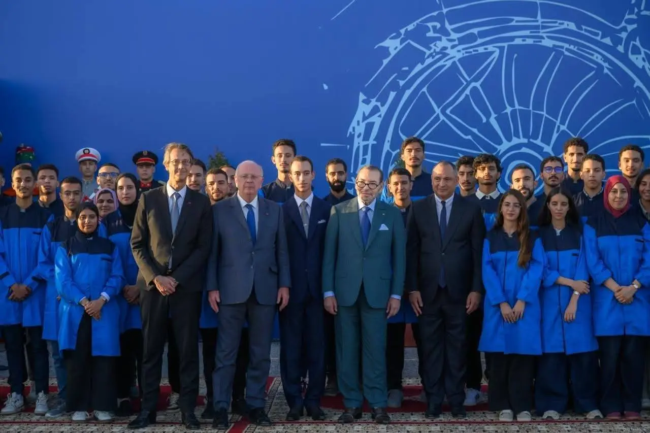 وبالمناسبة أيضا أخذت للملك محمد السادس صورة تذكارية مع مجموعة من الشباب في طور التكوين بمعهد مهن الطيران بالنواصر قصد ولوج المصنع المستقبلي لصيانة محركات الطائرات، قبل الإشراف على إعطاء انطلاقة أشغال بناء المركب الصناعي “محركات الطائرات” التابع لمجموعة “سافران”.