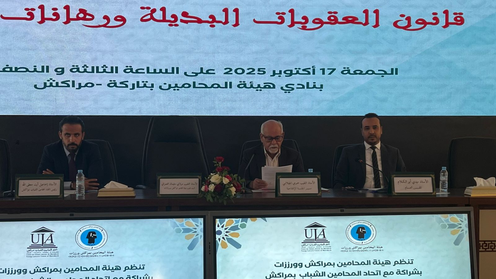 في إطار تفاعلها مع أبرز الإصلاحات التشريعية الراهنة، نظمت هيئة المحامين بمراكش وورزازات، بشراكة مع اتحاد المحامين الشباب بمراكش، مساء اليوم الجمعة، ندوة علمية متمحورة حول “قانون العقوبات البديلة ورهانات التنزيل”.