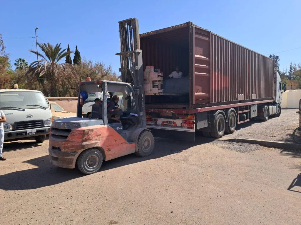 بدعم من مؤسسة أمريكية.. عامل إقليم قلعة السراغنة يشرف على تفريغ شحنة من العشب الاصطناعي لتكسية ملاعب الإقليم