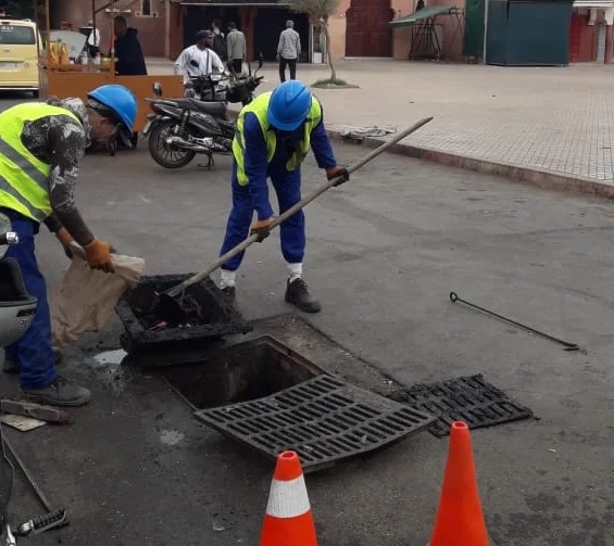 فرق الشركة الجهوية بمراكش تكثف تدخلاتها لتأمين شبكات التطهير قبل الشتاء