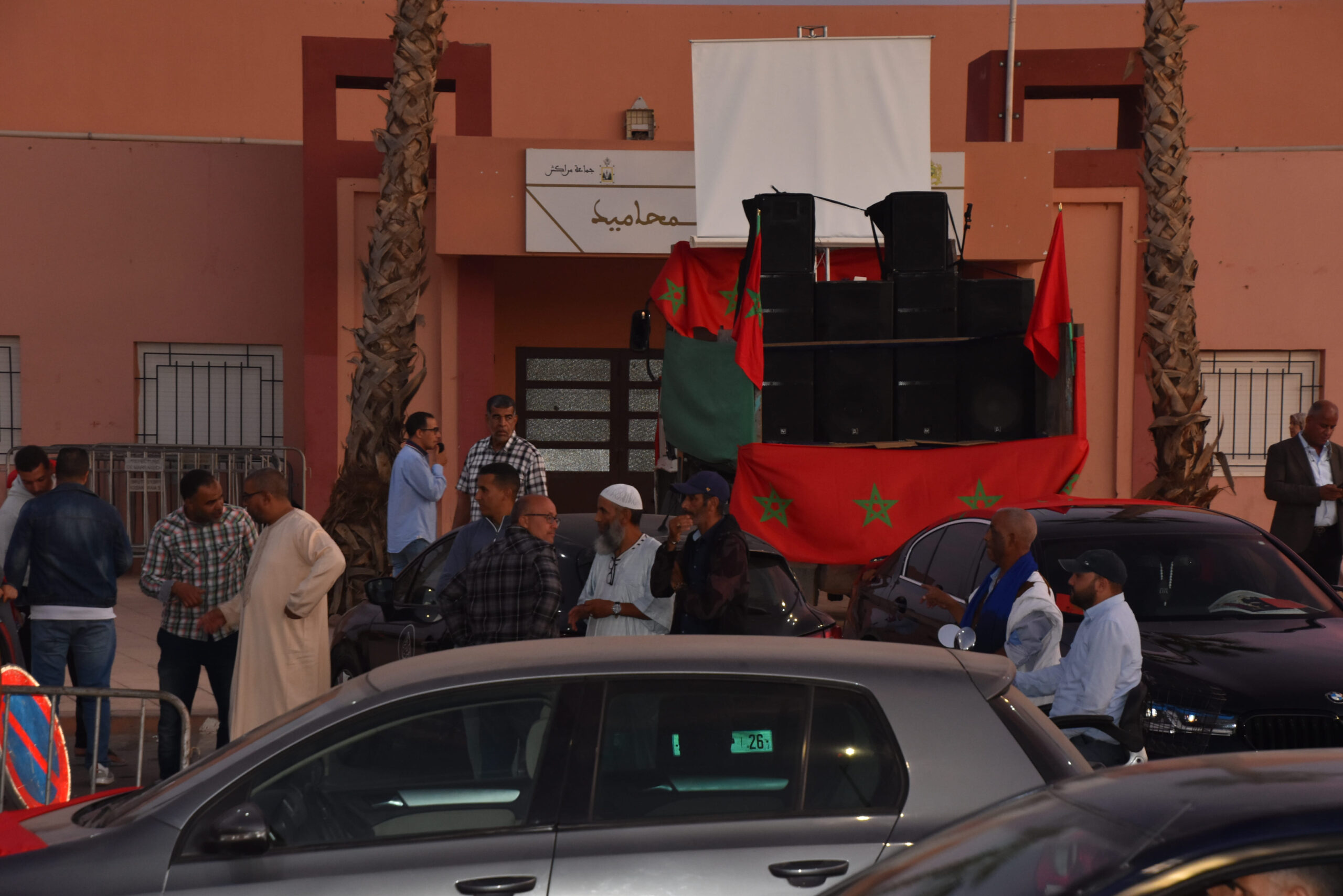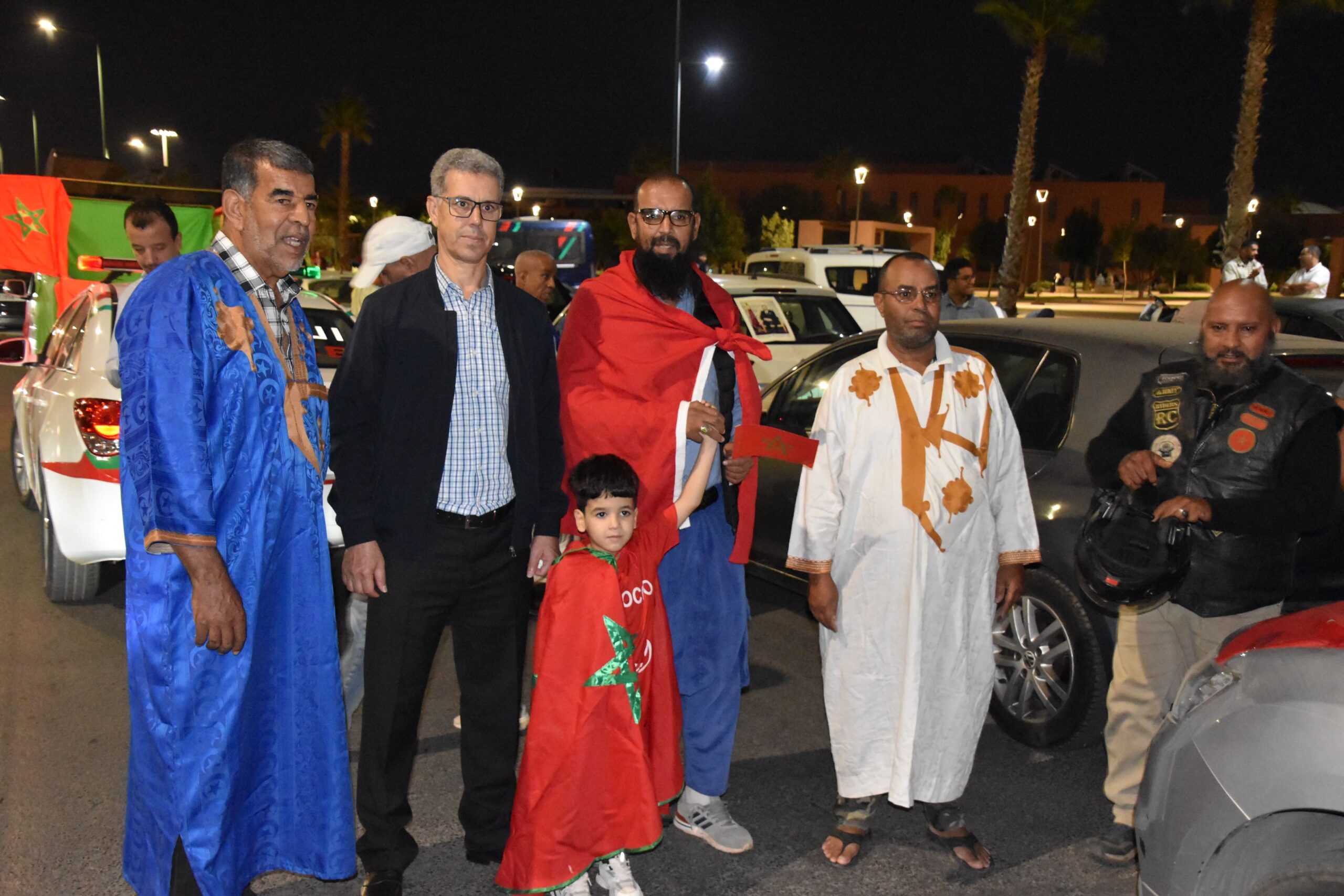 شهدت مدينة مراكش مساء اليوم الجمعة مسيرات حاشدة عمت مختلف أحيائها، خصيصاً في منطقة المحاميد، وذلك احتفالاً بالقرار الأخير لمجلس الأمن الدولي الذي اعتمد مقترح الحكم الذاتي المغربي كحل “واقعي وذي مصداقية” للنزاع المفتعل حول الصحراء.