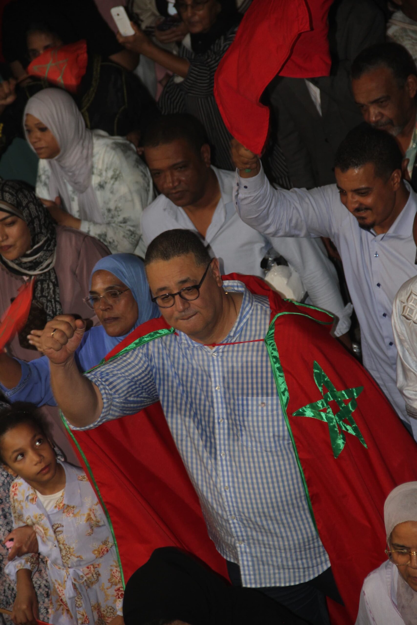 رُفعت الرايات المغربية ورُددت الشعارات الوطنية التي جددت التشبث بالوحدة الترابية للمملكة وبالولاء لجلالة الملك محمد السادس.