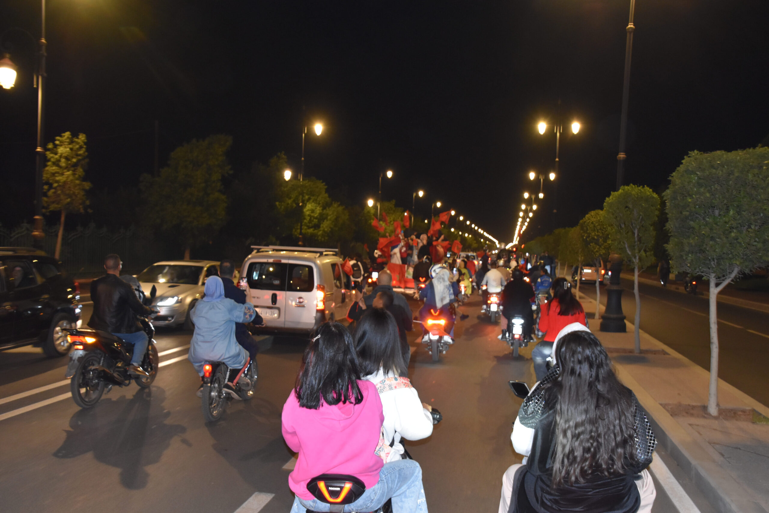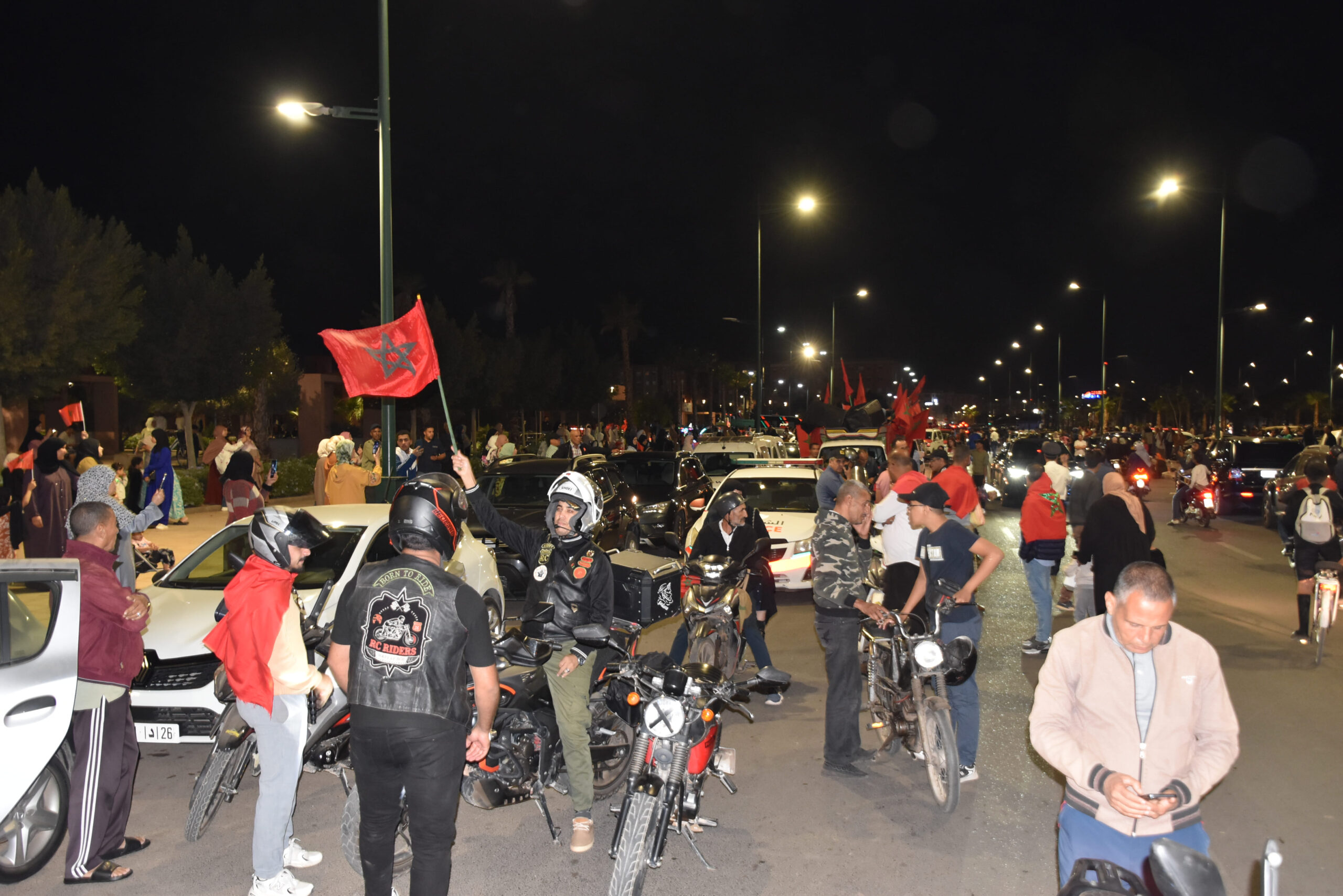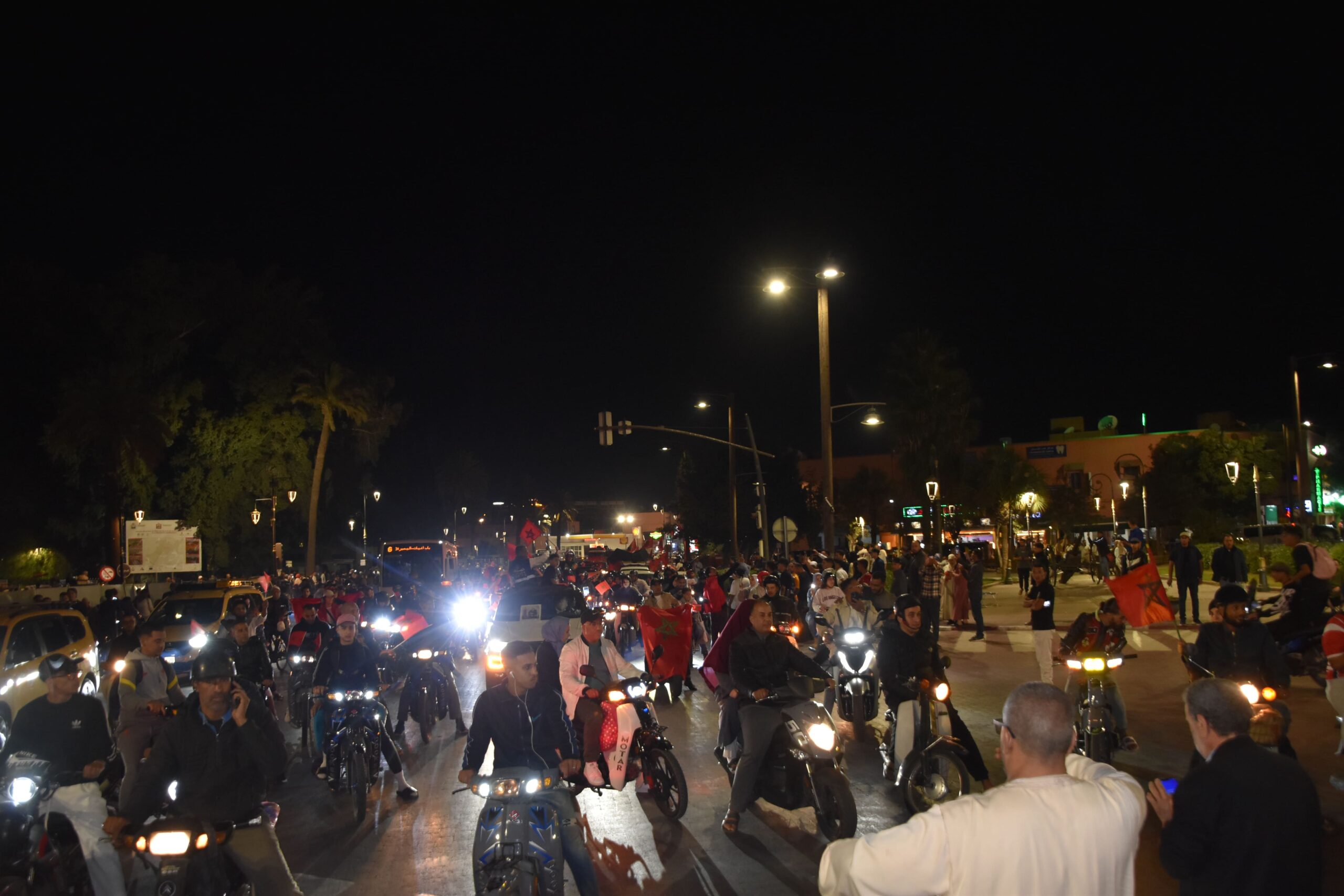 عمت الفرحة والاحتفالات مدينة مراكش مساء اليوم الجمعة، حيث شهدت مختلف أحيائها مسيرات حاشدة ومظاهر ابتهاج شعبية.