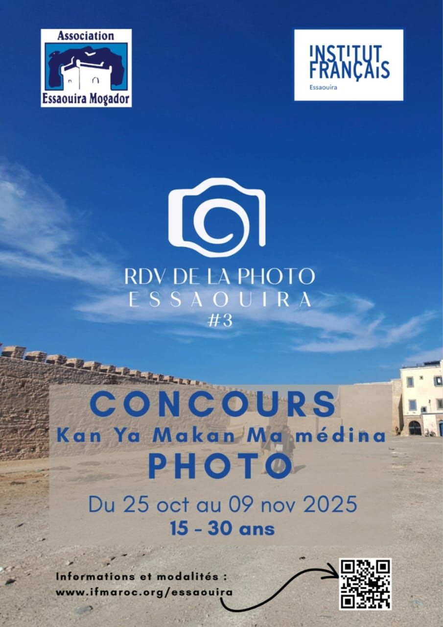أعلن المعهد الفرنسي بالصويرة عن تنظيم مسابقة للتصوير الفوتوغرافي تحت عنوان “كان يا مكان ما مدينتي”، والمخصصة لفئة الشباب المتراوحة أعمارهم بين 15 و30 سنة.