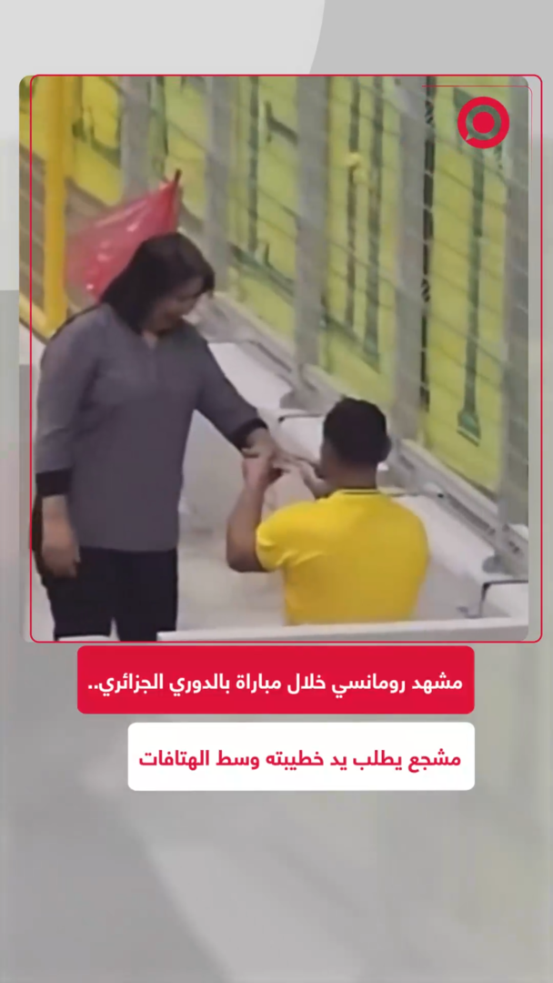 أثار تصرف شاب جزائري انحنى لطلب يد خطيبته للزواج خلال مباراة كرة قدم، تفاعلا كبيرا على منصات التواصل الاجتماعي، كونه مشهداً غير مألوف لدى الجزائريين، حيث قسّم الآراء بين مؤيد ومعارض.