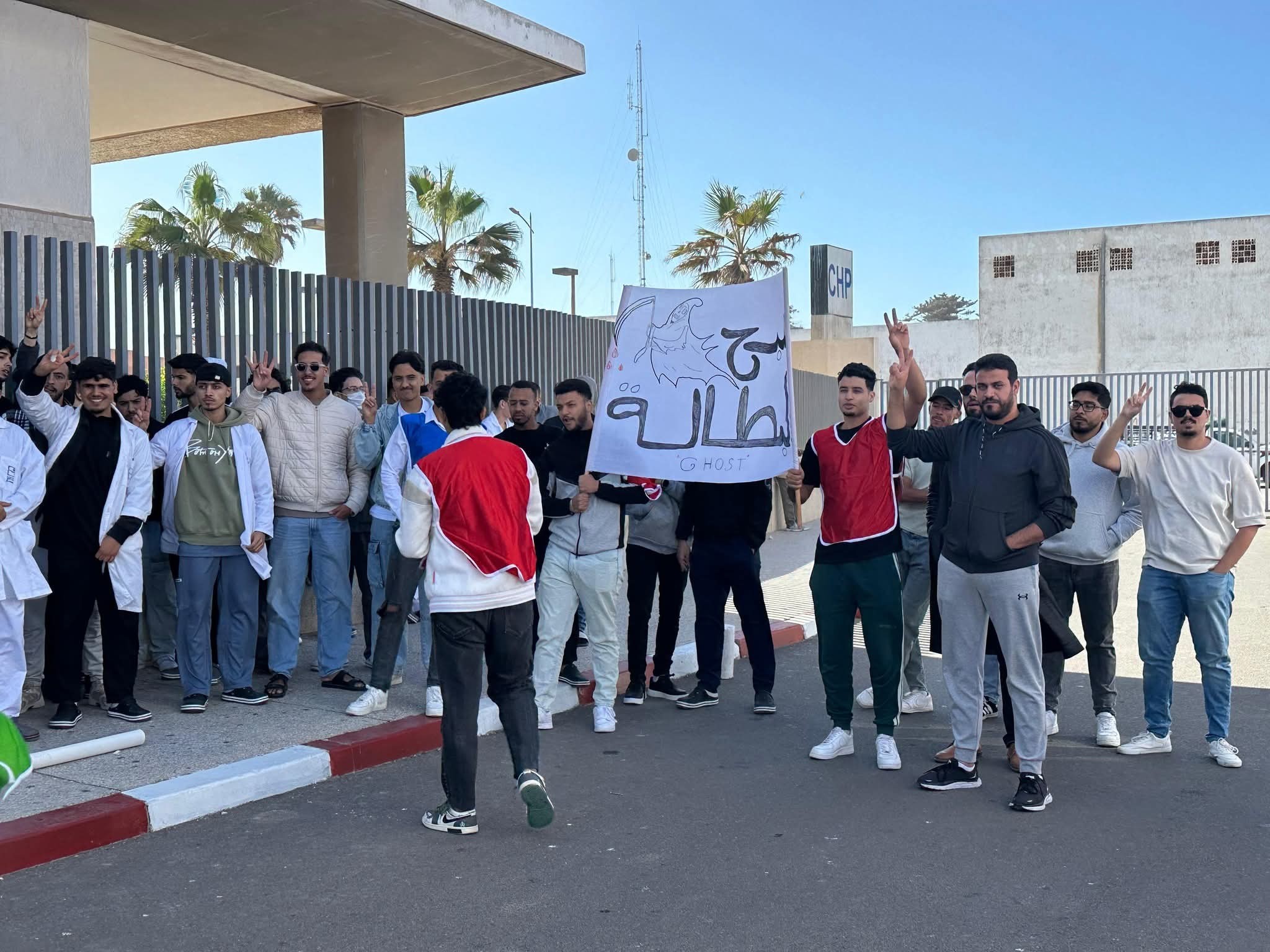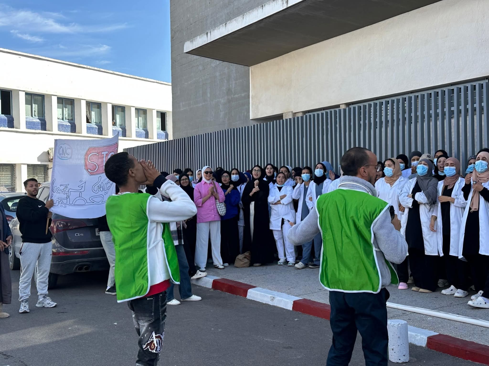 تجمّع المحتجون أمام مقر المندوبية الإقليمية للصحة والحماية الاجتماعية، مطالبين بتحسين ظروف التكوين وضرورة الاعتراف بمجهودات الأطر التمريضية.
