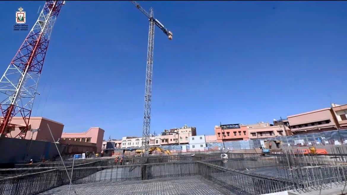 تتواصل بمدينة مراكش وتيرة الأشغال بوتيرة متسارعة في مشروع مرأب السيارات والدراجات بعرصة المعاش، الذي يقع على مقربة من ساحة جامع الفنا التاريخية.
