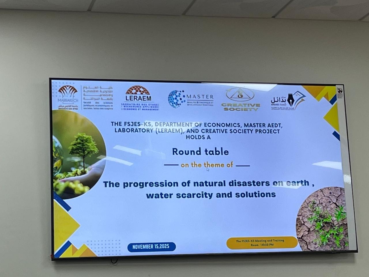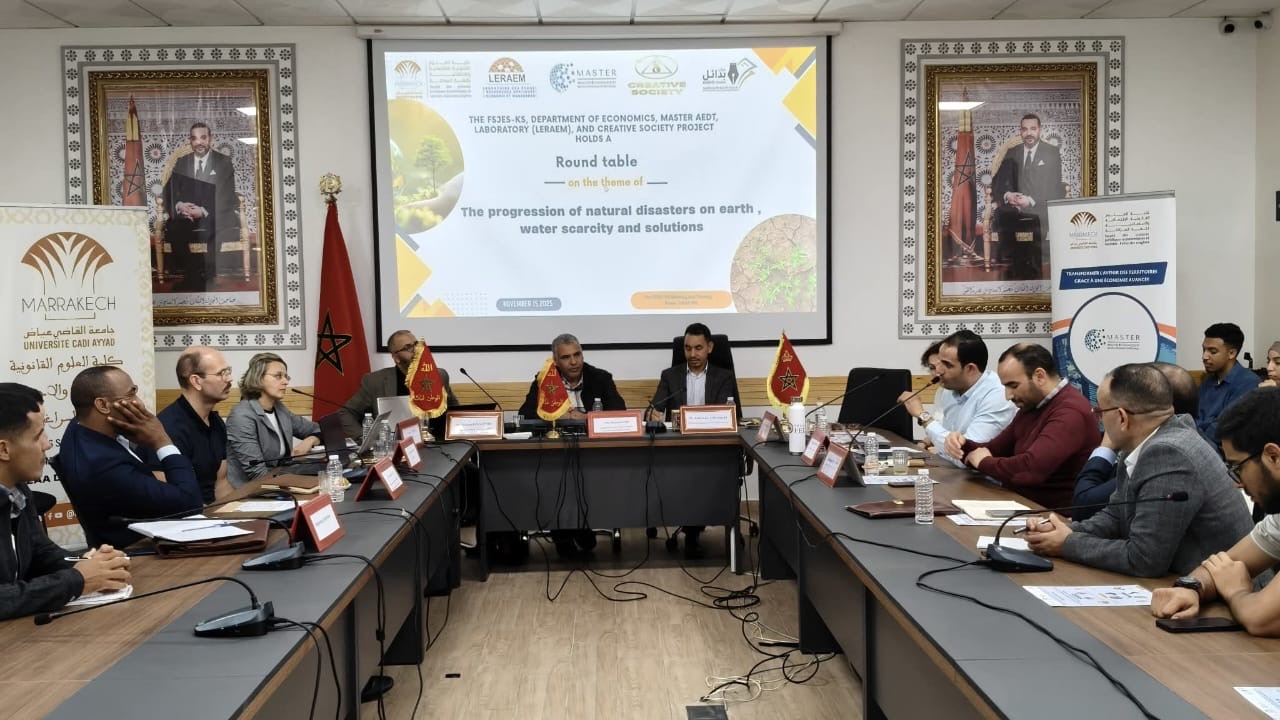 في إطار دينامية الانفتاح الأكاديمي وتعزيز النقاش العلمي حول القضايا البيئية الراهنة، نظّمت كلية العلوم القانونية والاقتصادية والاجتماعية بقلعة السراغنة (FSJES-KS)، بشراكة مع مشروع المجتمع الإبداعي الدولي، ومركز بدائل للدراسات وشعبة الاقتصاد، وماستر الهندسة البيئية للتنمية الترابية (AEDT)، ومختبر البحث في الاقتصاد التطبيقي والتدبير (LERAEM)، يوم أمس السبت 16 نونبر، مائدة مستديرة حول موضوع:”تطور الكوارث الطبيعية على الأرض، ندرة المياه والحلول”.