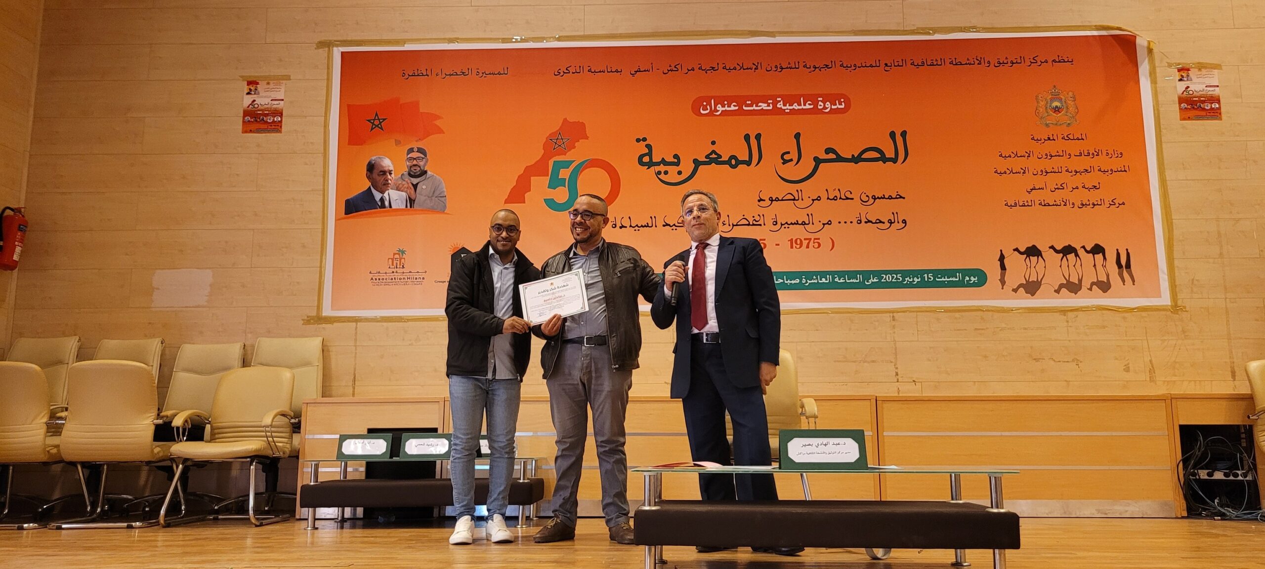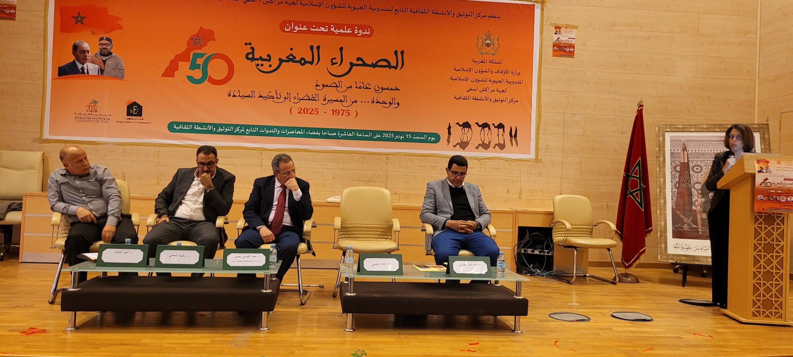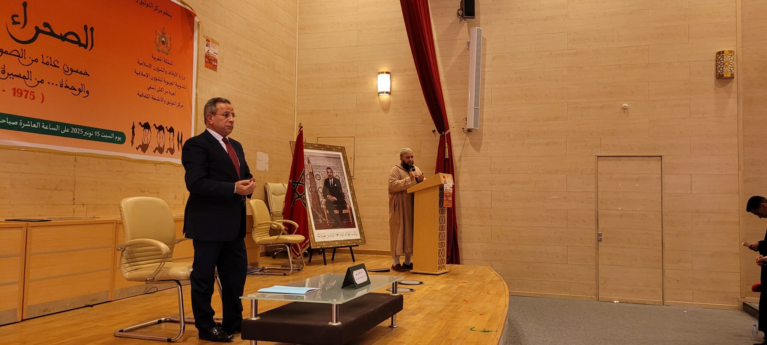 نظم مركز التوثيق والأنشطة الثقافية التابع للمندوبية الجهوية للشؤون الإسلامية لجهة مراكش آسفي، اول امس السبت 15 نونبر، ندوة علمية وثقافية احتفالية تحت شعار: “الصحراء المغربية… خمسون عامًا من الوحدة والبناء”.