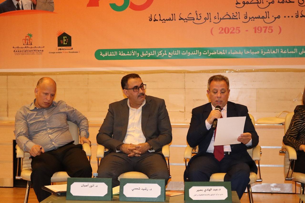 وعرفت الجلسة العلمية تقديم مجموعة من المداخلات الأكاديمية التي لامست جوانب متعددة من تاريخ المسيرة الخضراء ودلالاتها السياسية والتنموية، شارك فيها كل من الدكتور رشيد شحمي بمداخلة حول المسيرة الخضراء كـ “مسار تاريخي حافل”؛ والدكتورة سناء زعمي التي ناقشت موضوع “التنمية المندمجة المجالية وأهمية استكمال الوحدة الترابية في ضوء خطب الملك محمد السادس”؛ والدكتور أنور أصبان في محور “النضال الدبلوماسي والعملي لتأكيد مغربية الصحراء”؛ والدكتور عبد البر حدادي الذي أبرز الأبعاد الرمزية والوطنية لملحمة المسيرة الخضراء.