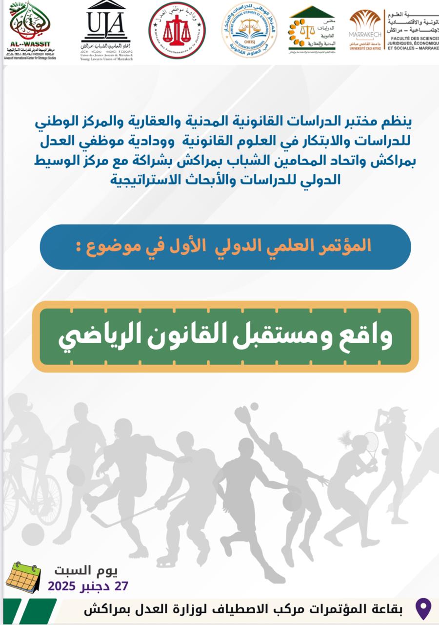 تستعد مدينة مراكش لاحتضان المؤتمر العلمي الدولي الأول حول “واقع ومستقبل القانون الرياضي”، الذي سيُعقد يوم السبت 27 دجنبر 2025.