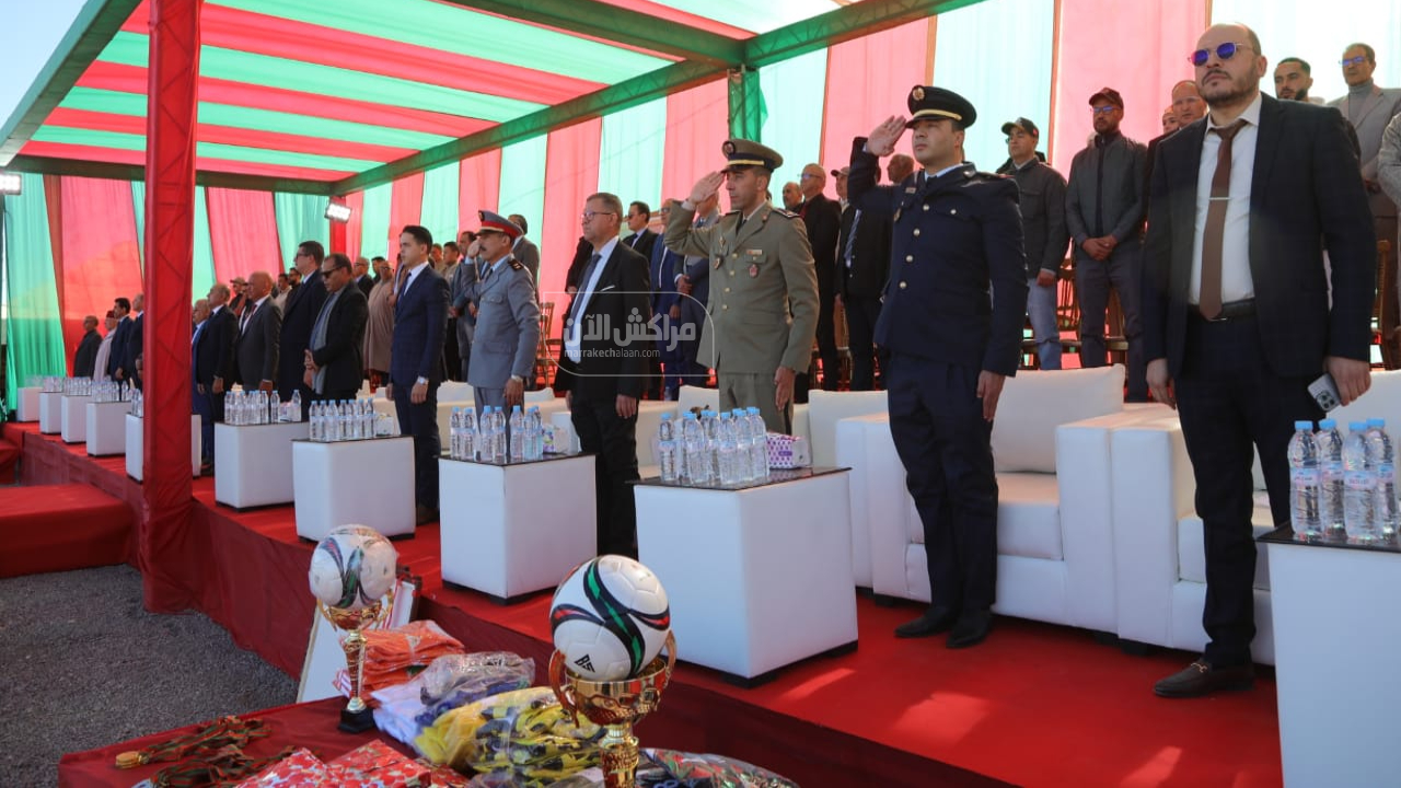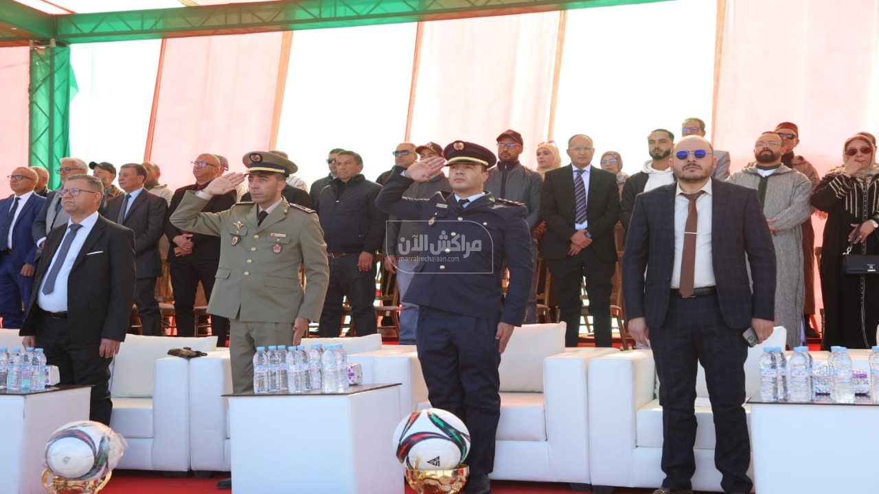استُقبل العامل، الذي كان مرفوقاً بالبرلماني عبد الرحيم واعمرو، ورؤساء المصالح الخارجية، وفاعلين محليين، في المهرجان المنظم على مدى أربعة أيام بدعم من وزارة الشباب والثقافة وجهة مراكش-آسفي وعمالة الإقليم، حيث استُهلت الزيارة بوقفة رسمية لأداء النشيد الوطني، استحضاراً لقيم المواطنة والاعتزاز بالهوية المغربية.