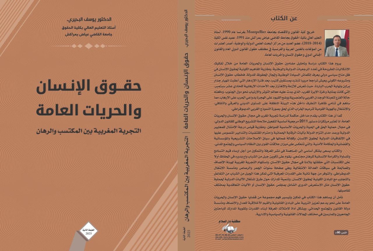 أصدرت مكتبة دار السلام بالرباط مؤخراً مؤلَّفاً جديداً للعميد والأستاذ الجامعي الدكتور يوسف البحيري، يحمل عنوان: “حقوق الإنسان والحريات العامة: التجربة المغربية بين المكتسب والرهان”، وهو عمل علمي يسعى إلى تقييم مسار المغرب في مجال حماية الحقوق والحريات من زوايا دستورية وقانونية وسياسية، مع مقاربة مختلف التحديات المطروحة في المرحلة الراهنة.