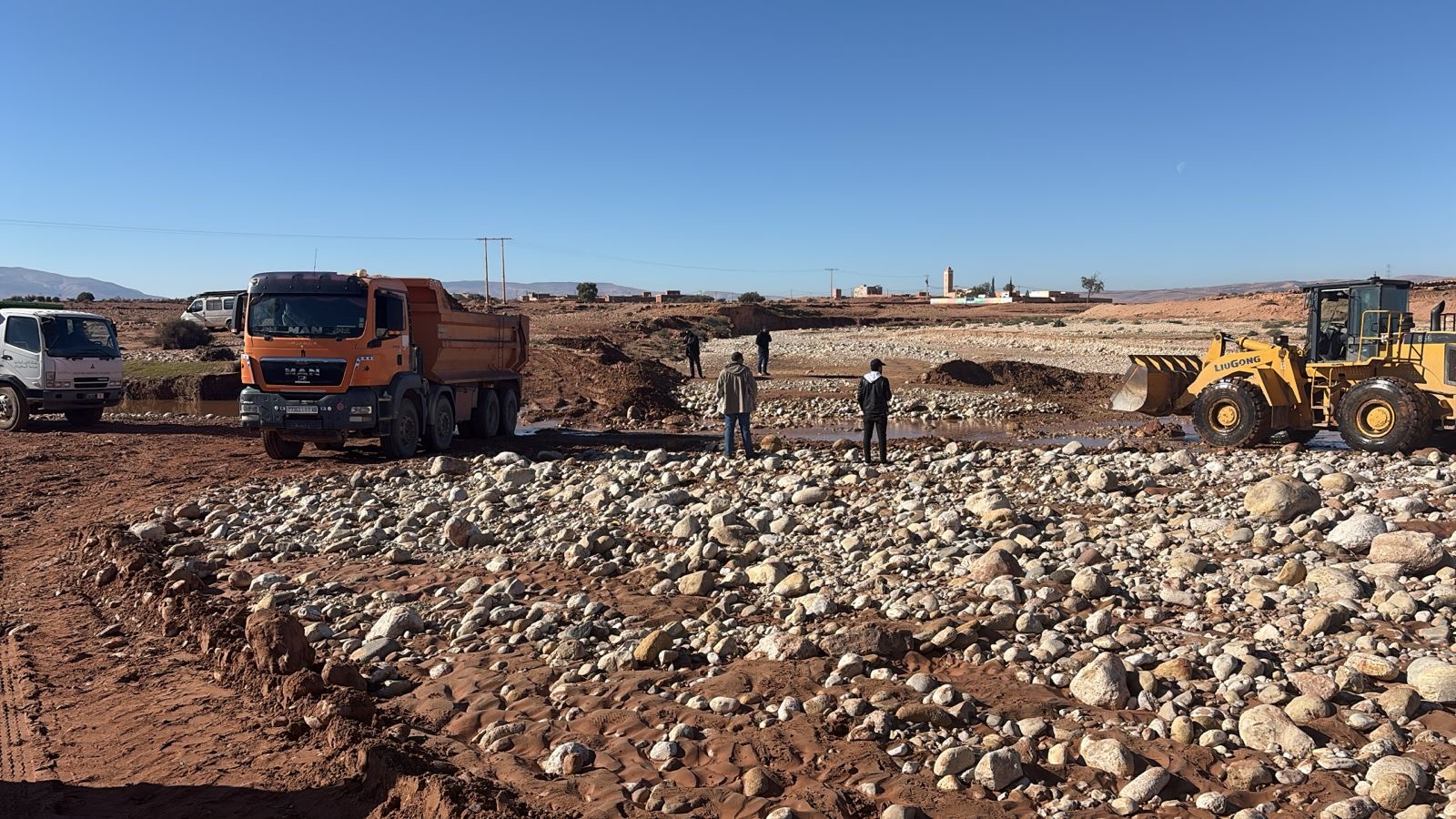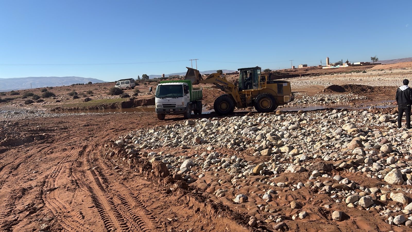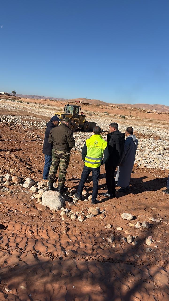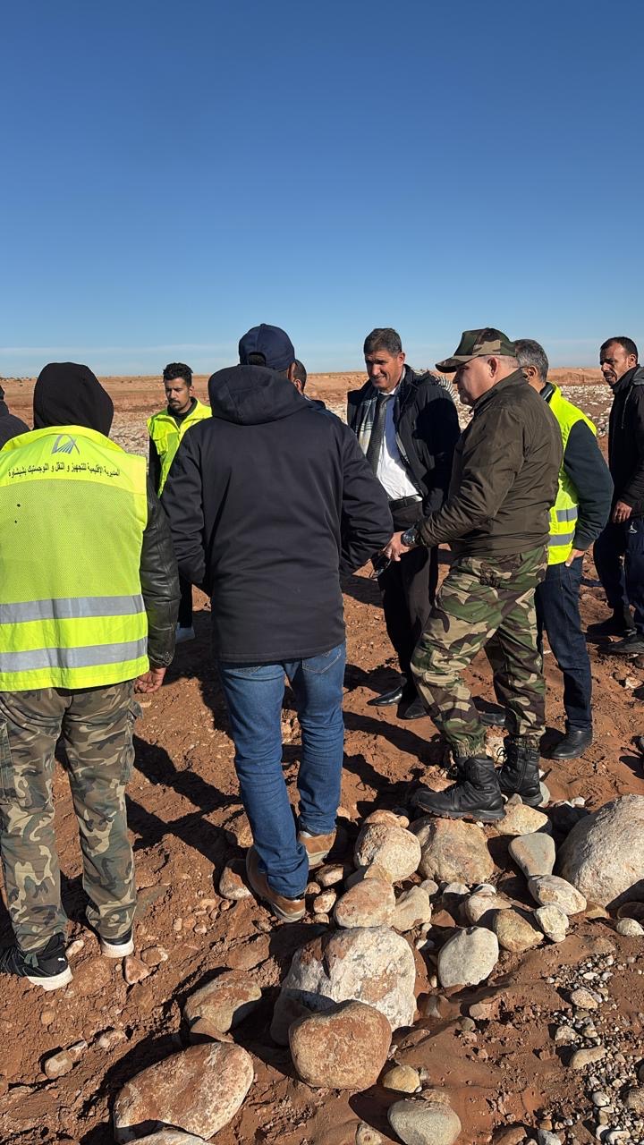 وشكلت هذه الزيارة مناسبة لإعطاء انطلاقة أشغال إعادة فتح الطريق المؤدية إلى الدوار، والتي تضررت بشكل كبير جراء السيول وارتفاع منسوب الأودية، حيث جرى تسخير إمكانيات لوجستية مهمة تمثلت في تعبئة شاحنتين كبيرتين، وثلاث جرافات، إلى جانب أعوان عرضيين، من أجل تسريع وتيرة التدخل وضمان عودة حركة السير في أقرب الآجال.