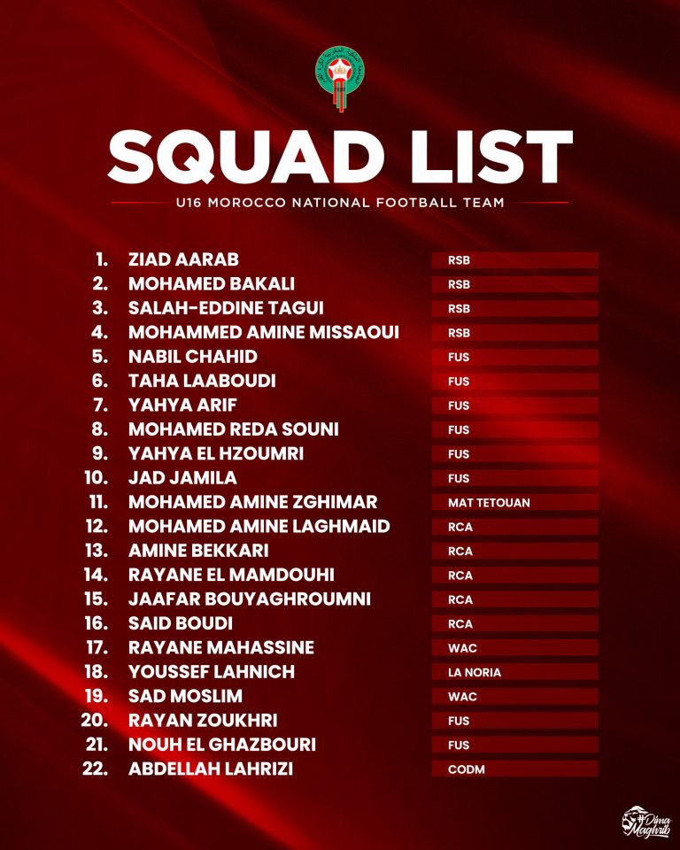 ولهذا الغرض، وجه اشرف حنزاز ، مدرب المنتخب الوطني لاقل من 16 سنة الدعوة إلى 22 لاعبا ويتعلق الأمر بكل من :