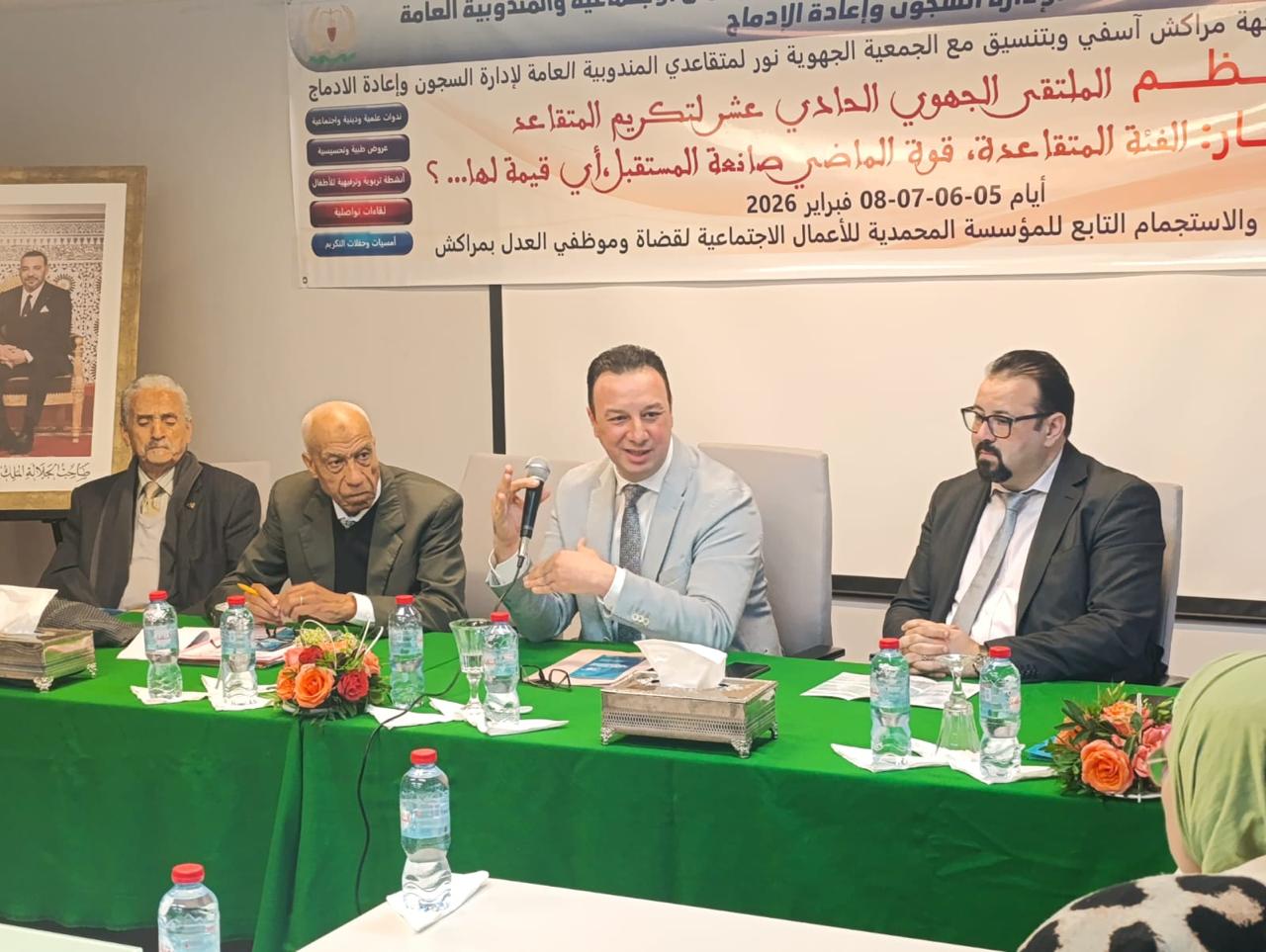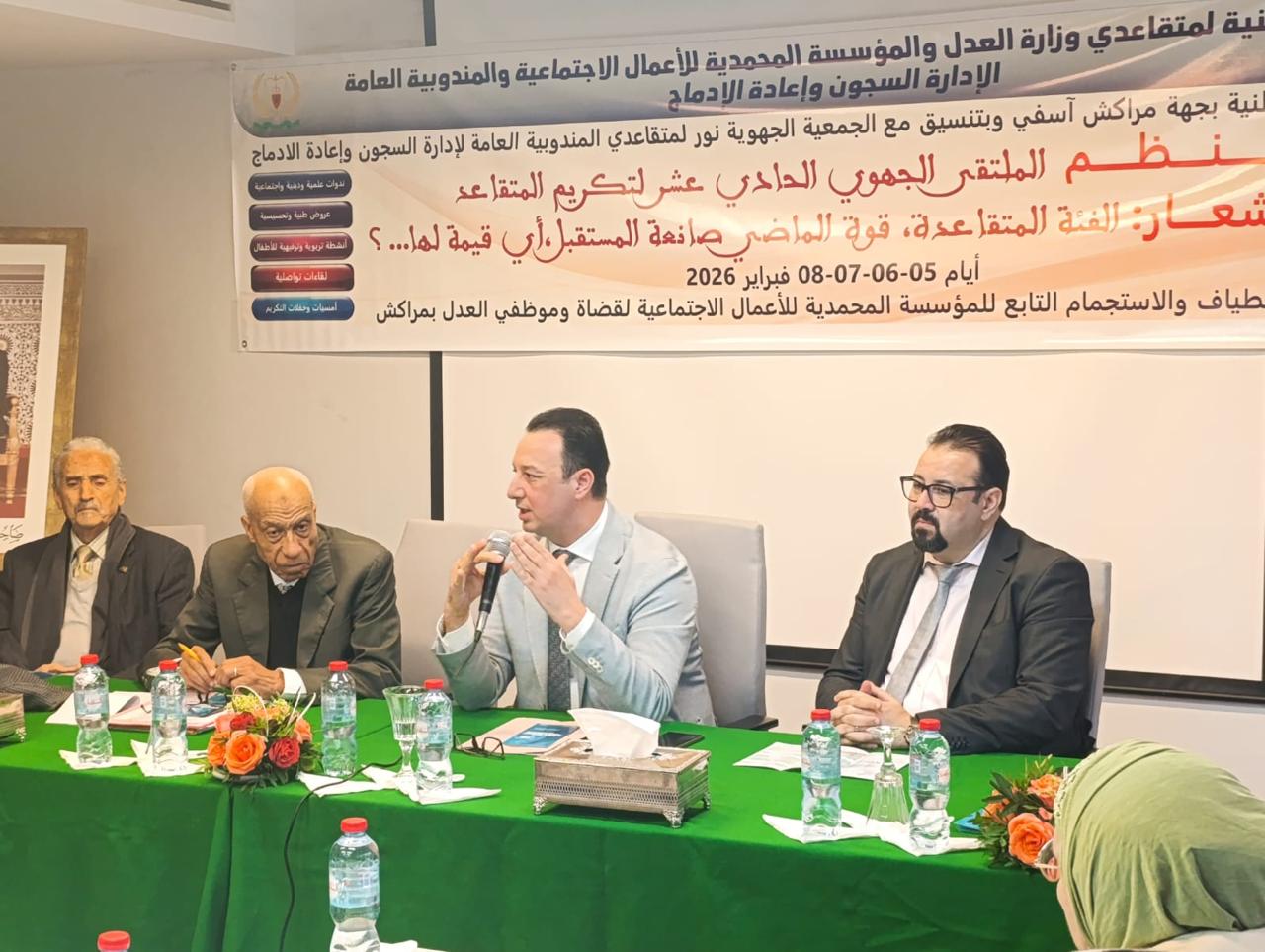 في إطار فعاليات الملتقى الجهوي الحادي عشر لتكريم المتقاعدين، احتضن مركب الاصطياف والاستجمام التابع للمؤسسة المحمدية للأعمال الاجتماعية لقضاة وموظفي العدل بمراكش، يوم 7 فبراير 2026، لقاءً تواصليًا محوريًا أطره لسان الدين حران، المدير العام للمؤسسة المحمدية لقضاة وموظفي العدل.