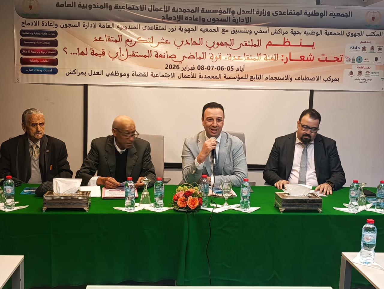 ويُذكر أن الملتقى الجهوي الحادي عشر لتكريم المتقاعدين، المنظم من طرف المكتب الجهوي للجمعية الوطنية لمتقاعدي وزارة العدل بجهة مراكش آسفي، بشراكة مع المؤسسة المحمدية والمندوبية العامة لإدارة السجون وإعادة الإدماج، تخلله برنامج متنوع شمل ندوات علمية ودينية، لقاءات تواصلية، عروضًا طبية وتحسيسية، وأنشطة تربوية وترفيهية، إلى جانب أمسيات وحفلات تكريمية.