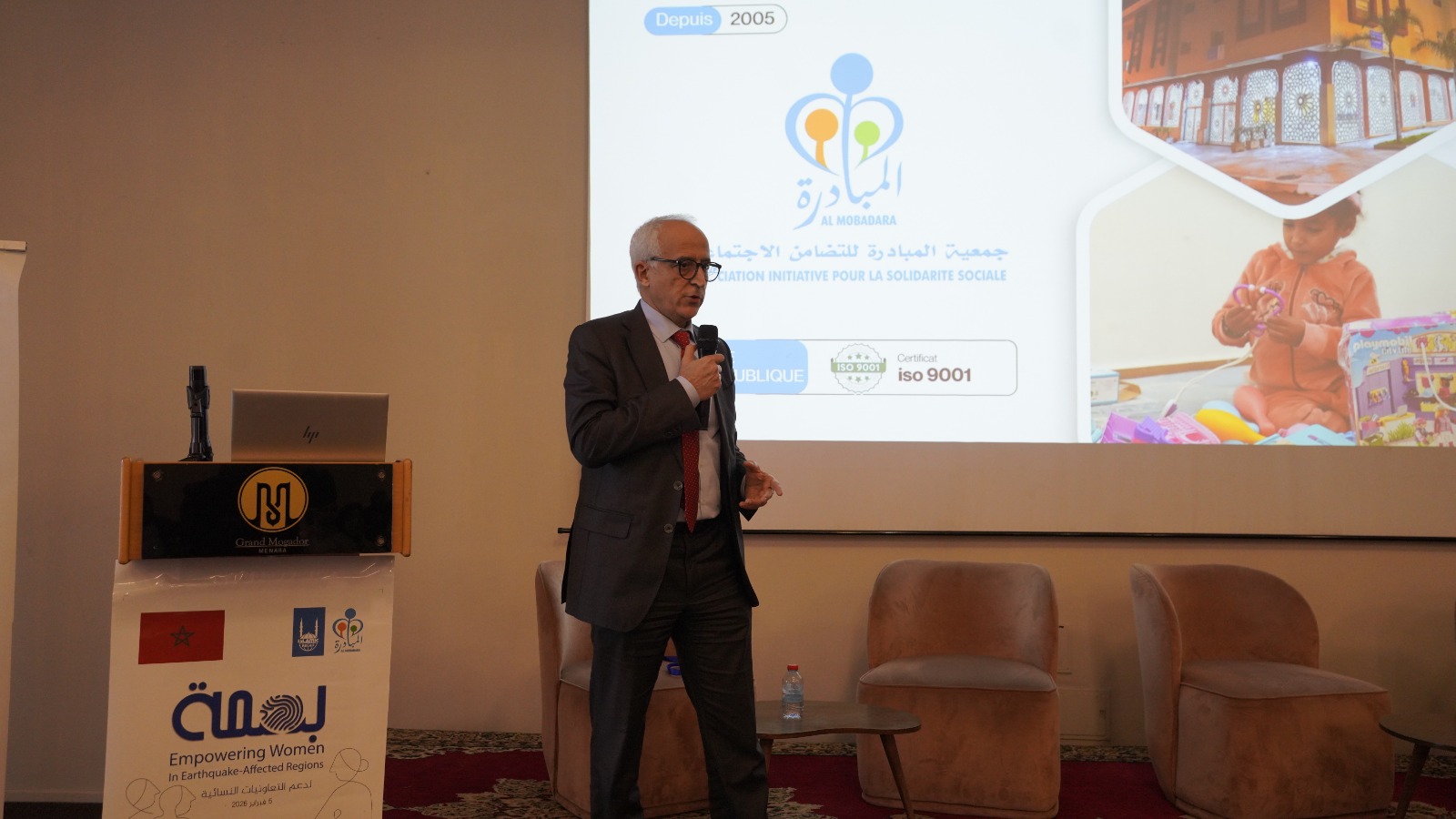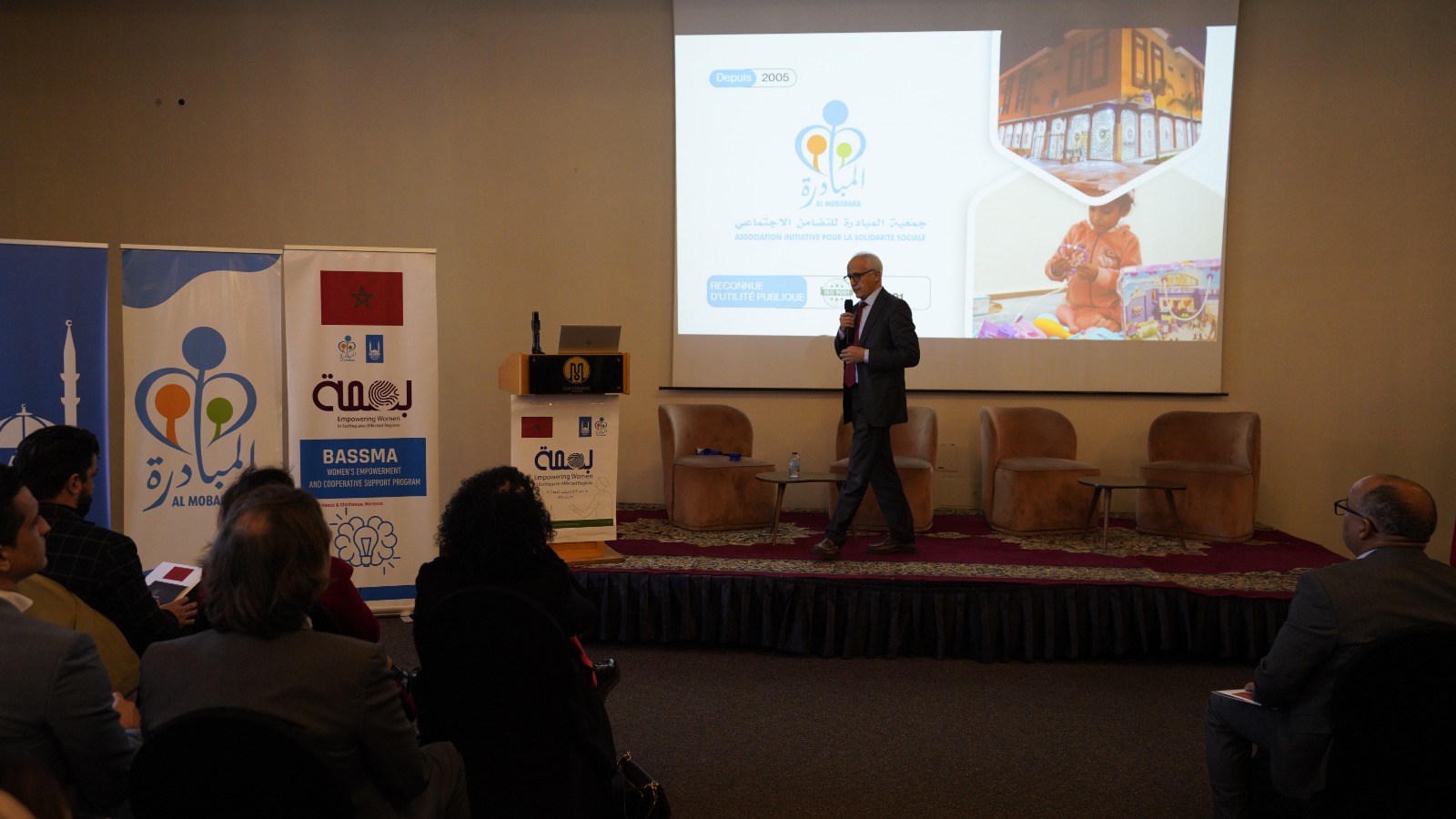 واستعرض الطيب أعيس، رئيس جمعية المبادرة للتضامن الاجتماعي، خلال الحفل مسار الجمعية الذي بدأ بالتدخلات الإغاثية لانتشال الضحايا وتوفير الإيواء والتطبيب، وصولاً إلى مشروع بناء 1000 مسكن للمتضررين.