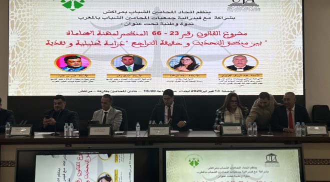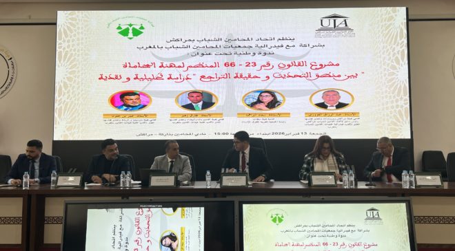 وتحت شعار “مشروع القانون 23-66: بين منطق التمكين وحقيقة التراجع”، استعرض المشاركون قراءة تحليلية ونقدية لمواد المشروع، حيث تركز النقاش حول مدى مواءمة الصيغة الحالية لتطلعات المهنيين وحاجة منظومة العدالة لإصلاح شامل.