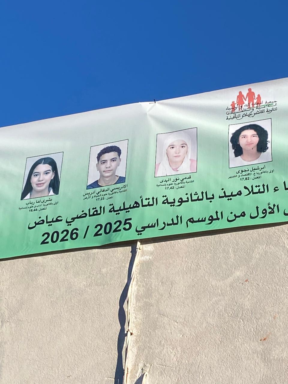 نظمت الأطر الإدارية والتربوية بالثانوية التأهيلية قاضي عياض بمراكش، بتعاون مع جمعية أمهات وآباء وأولياء التلاميذ، حفلاً تكريمياً على شرف التلميذات والتلاميذ المتفوقين، وذلك تتويجاً لنتائجهم المحصل عليها خلال الأسدس الأول من الموسم الدراسي 2025-2026.