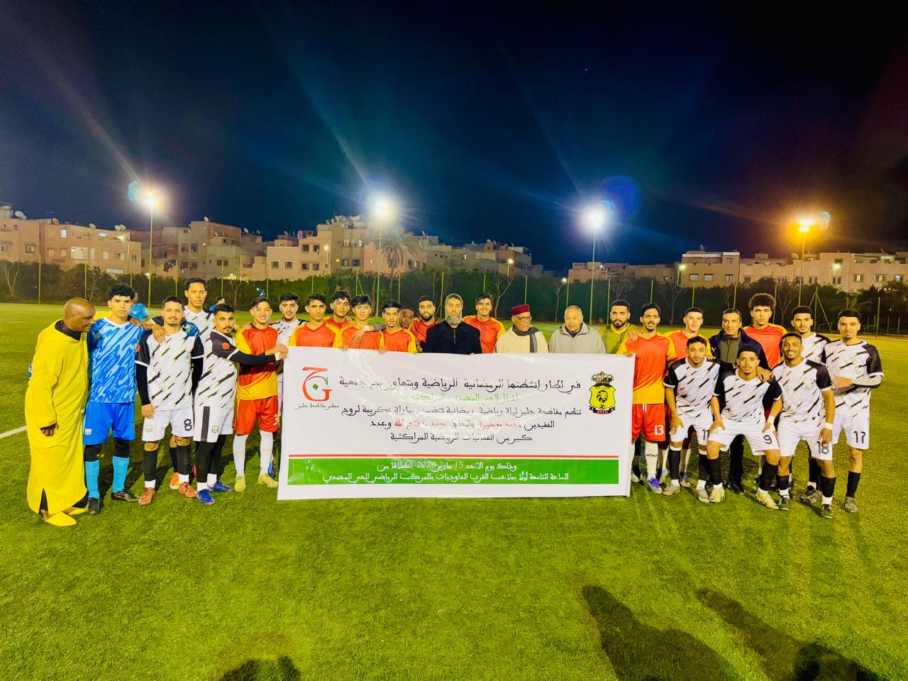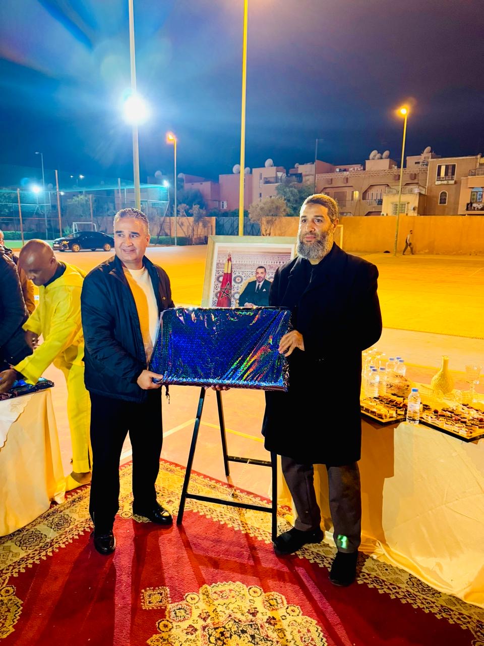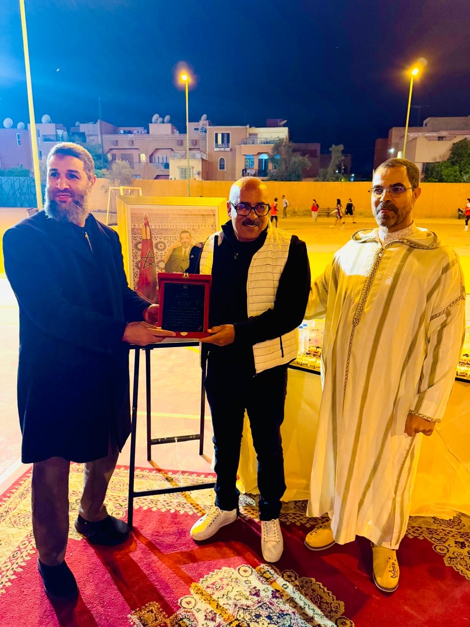 وشهدت التظاهرة، التي انطلقت مساء الأحد 15 مارس 2026، تنظيم مباراة تكريمية لروح الفقيدين “محمد بوخيرة” والحاج “يوسف فتح الله”، كعربون محبة وتقدير لمسارهما الحافل، كما عرف الحفل لحظة استثنائية بتكريم “سعيد الشرع”، الرئيس السابق لفريق الاتفاق المراكشي، تقديراً لجهود الكبير في خدمة كرة القدم بمراكش ومساهمته في إشعاع الفريق خلال فترة رئاسته.