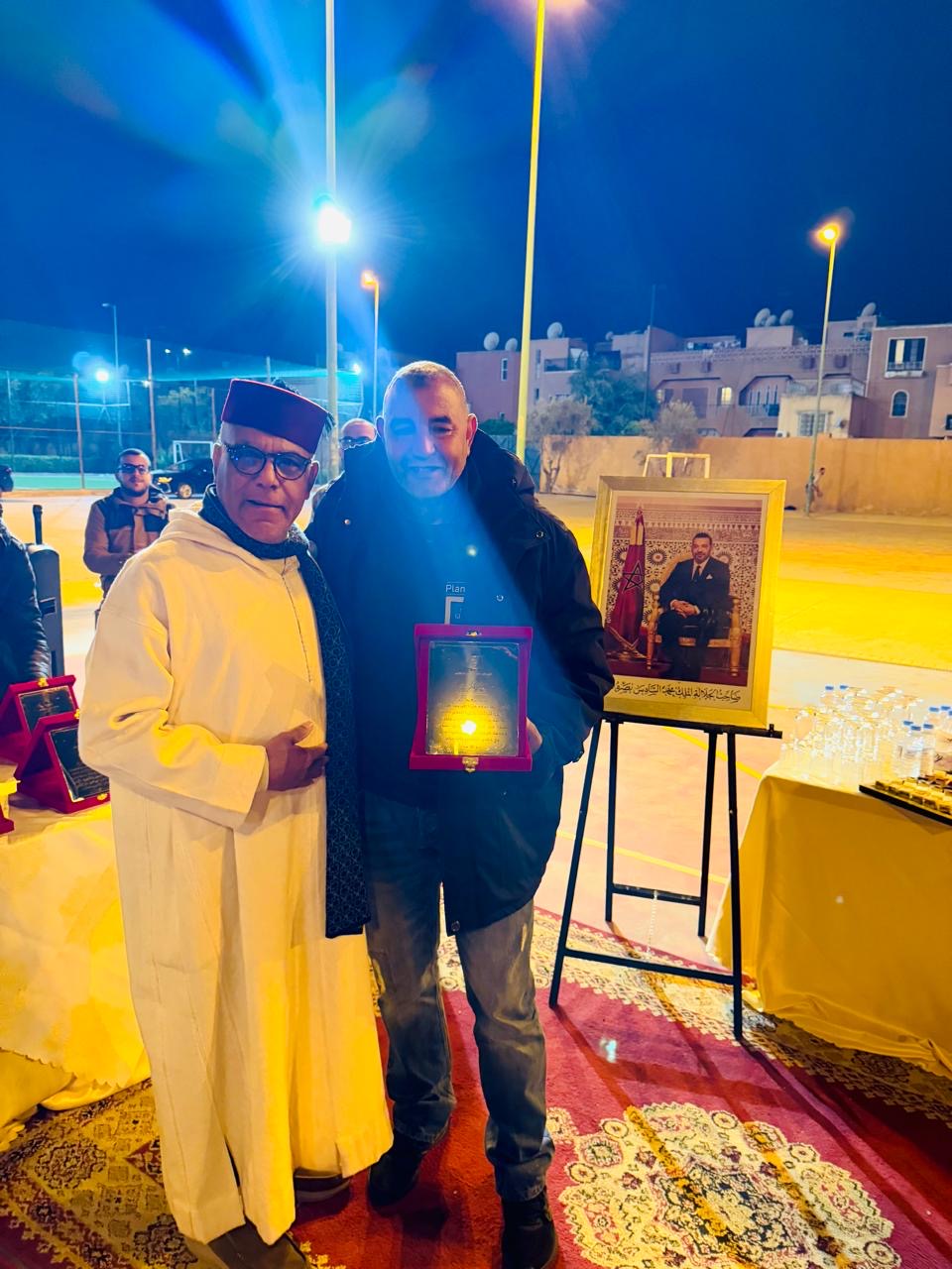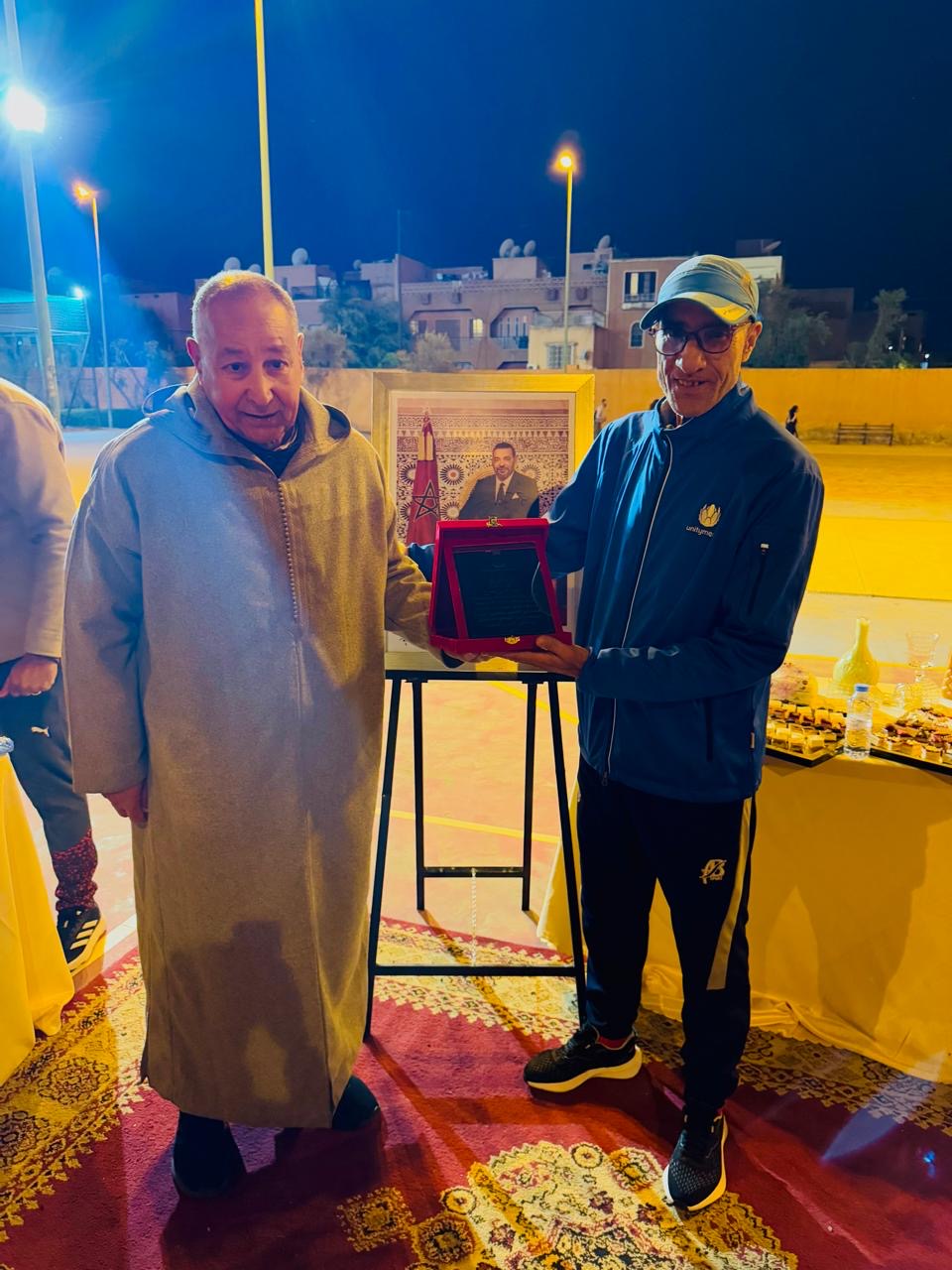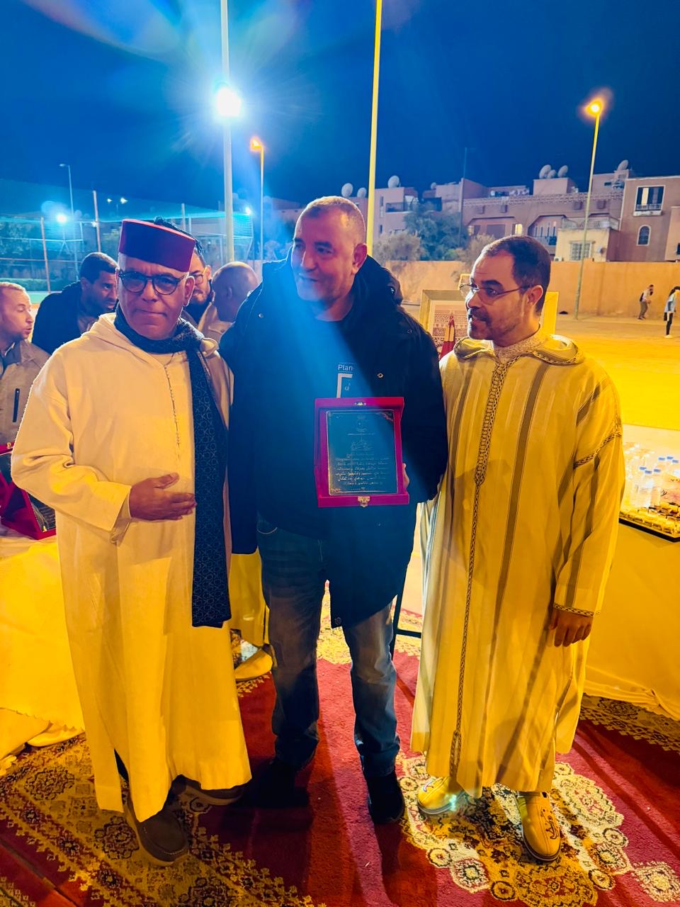 وشهدت التظاهرة، التي انطلقت مساء الأحد 15 مارس 2026، تنظيم مباراة تكريمية لروح الفقيدين “محمد بوخيرة” والحاج “يوسف فتح الله”، كعربون محبة وتقدير لمسارهما الحافل، كما عرف الحفل لحظة استثنائية بتكريم “سعيد الشرع”، الرئيس السابق لفريق الاتفاق المراكشي، تقديراً لجهود الكبير في خدمة كرة القدم بمراكش ومساهمته في إشعاع الفريق خلال فترة رئاسته.