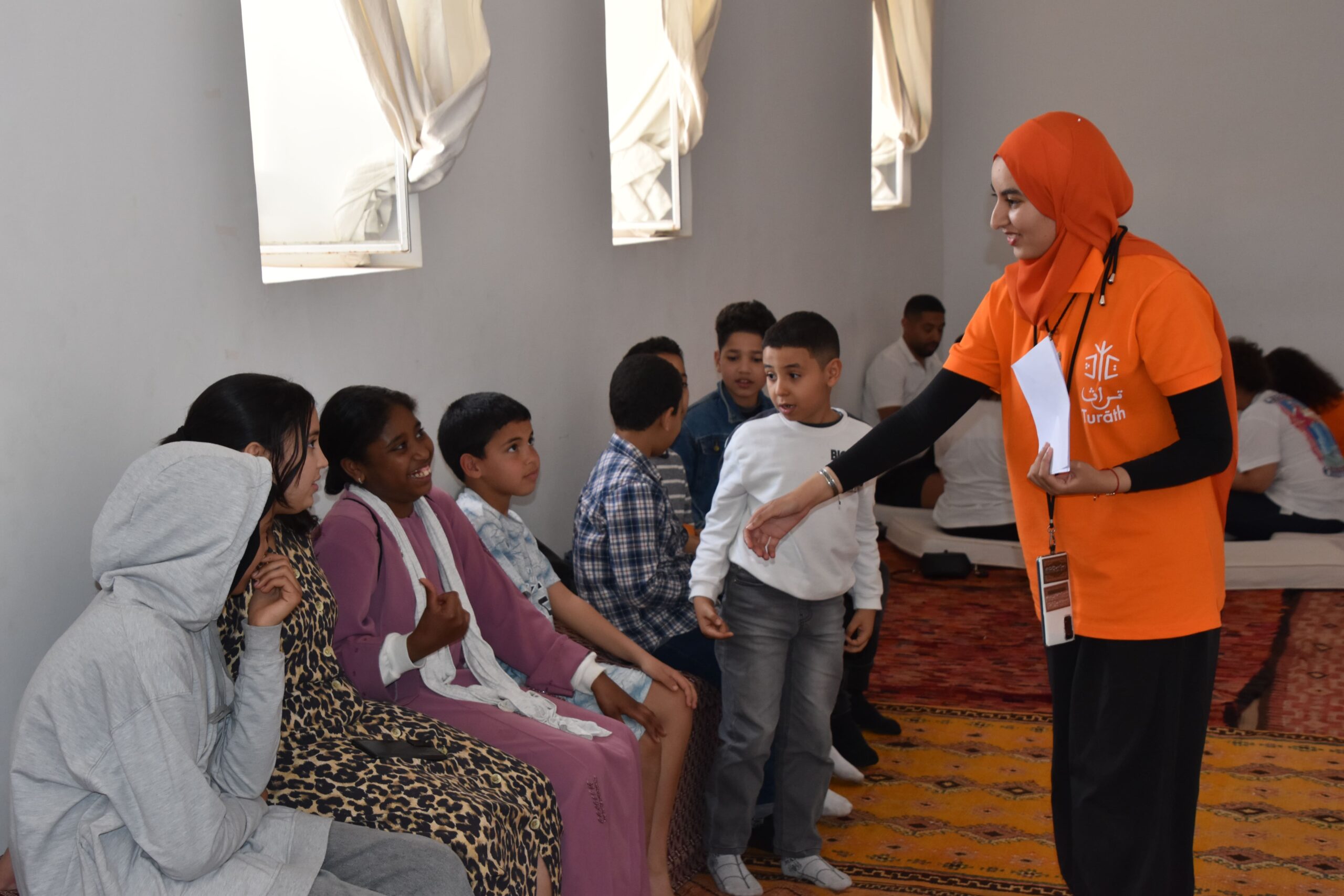 كما شملت الأنشطة لعبة “البحث عن الكنز” التي توظف الهندسة المعمارية لدار بلارج كفضاء للاستكشاف، حيث تم توزيع رموز لمدلولات تراثية عبر مرافق الدار، ومنها “قاعة الحفريات” التي ترمز لتراكم الحضارات، و”غرفة الحرفية” المخصصة للتعريف بالصناعة التقليدية، وصولاً إلى “الخيمة” كعنصر استحضاري يرمز لقيم التضامن والمأوى، استلهاماً من تجربة زلزال الحوز.