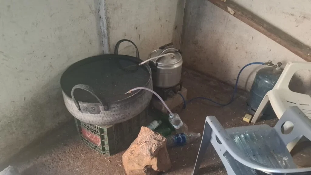 ومكنت المداهمة من حجز حوالي 500 لتر من مسكر “الماحيا” الجاهزة للترويج، بالإضافة إلى ضبط معدات لوجستية وتقنية متكاملة تستخدم في عملية التقطير، شملت أفرنة، وأنابيب نحاسية، وطنجرات ضغط، وبراميل، فضلاً عن حجز دراجة نارية وكميات هامة من المواد الأولية (التين المجفف والسكر).