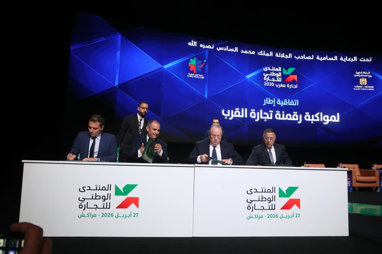 أما الاتفاقية الثانية، فتتعلق بإطار شراكة لمواكبة رقمنة تجارة القرب، وقعها وزير الصناعة والتجارة رياض مزور، ورئيس مجلس الإدارة الجماعية لبريد بنك الأمين النجار، ومدير “بريد كاش” محمد عادل الشرايبي، والرئيس المدير العام لمنصة (Chari.ma) إسماعيل بلخياط.