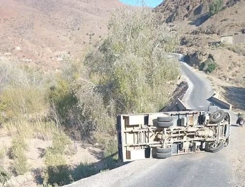 انقلاب شاحنة صهريجية لنقل البنزين بين الشماعية وشيشاوة